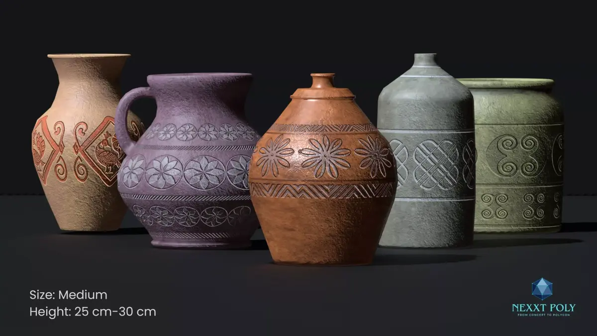 Realistic Game Ready Clay Pottery Set – PBR Textures | Unity & Unreal Engine | OBJ + FBX | Low poly