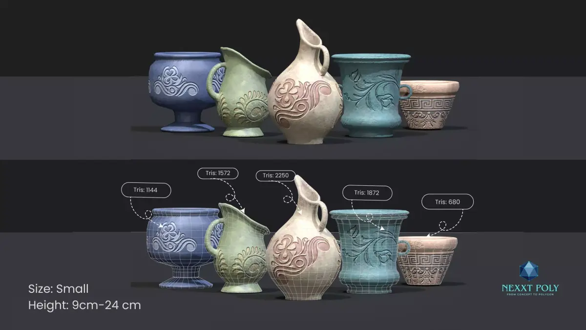 - Each model: 680–2250 tris