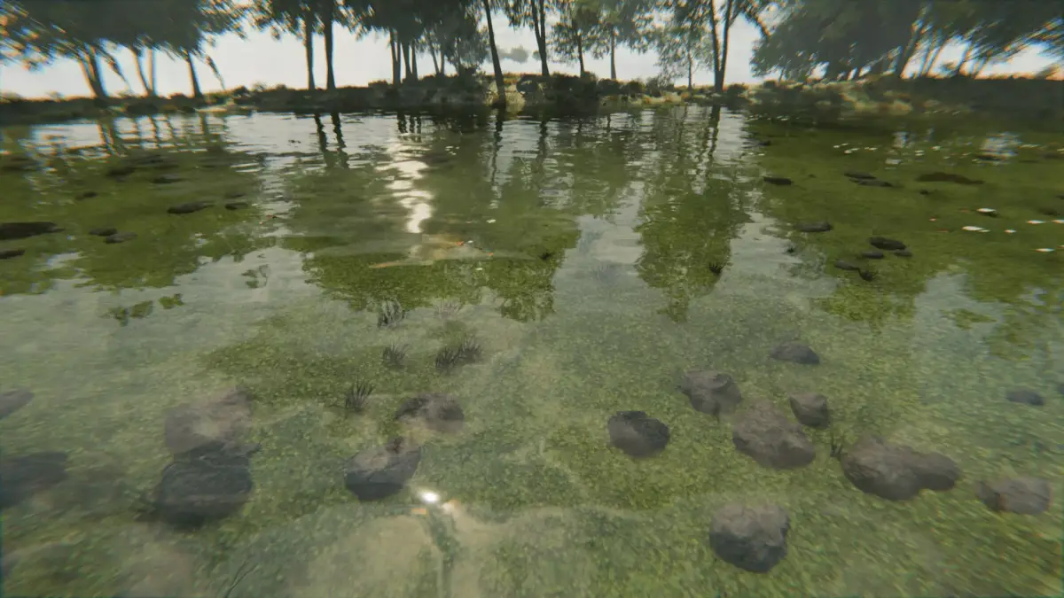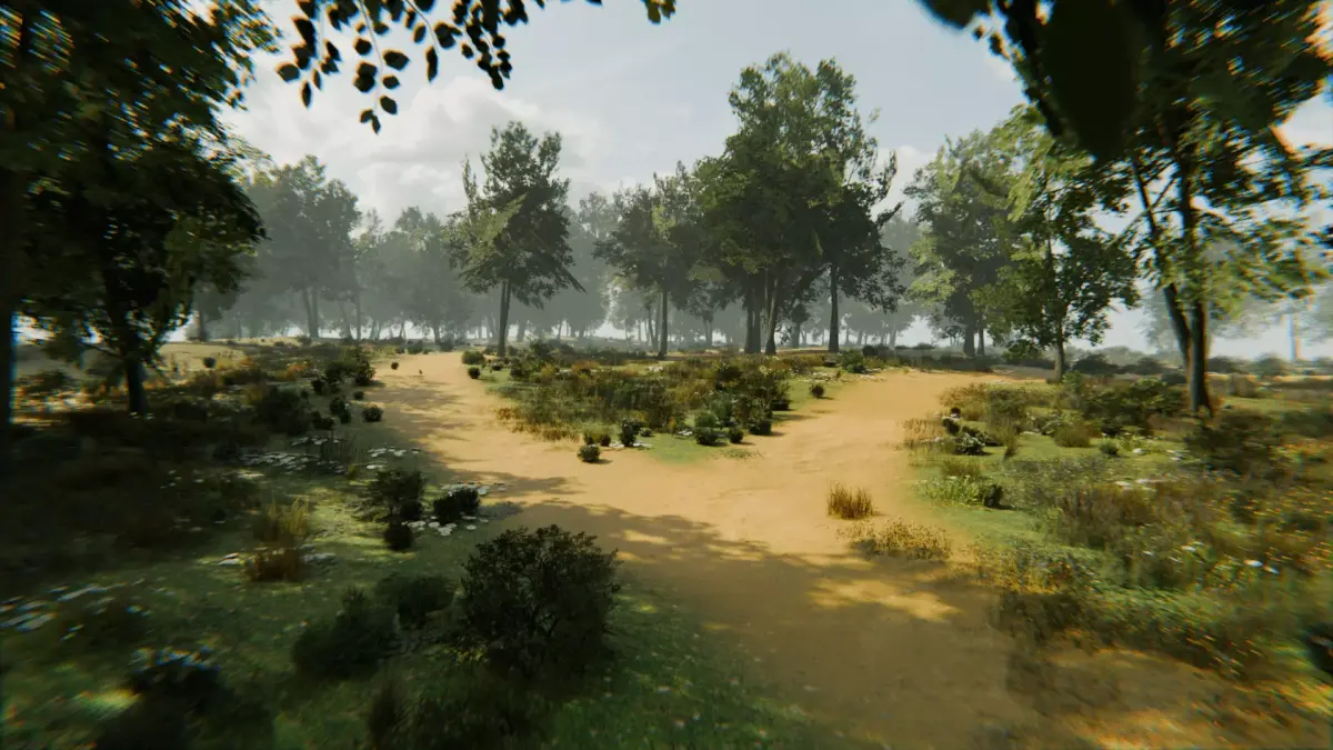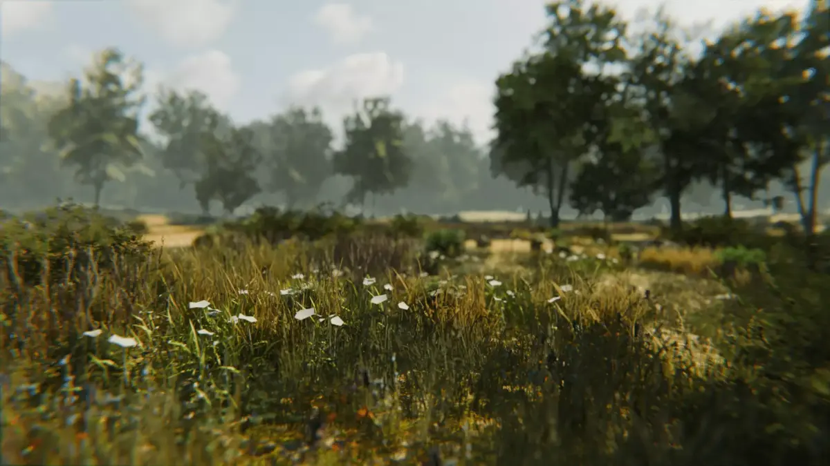 Features a large-scale terrain with mountains, trees, pond, and grassy plains. All assets use 2048x2048 PBR textures for high detail. An HDRI image is included for natural lighting and reflections. Subtle mist adds atmospheric depth without extra fog.