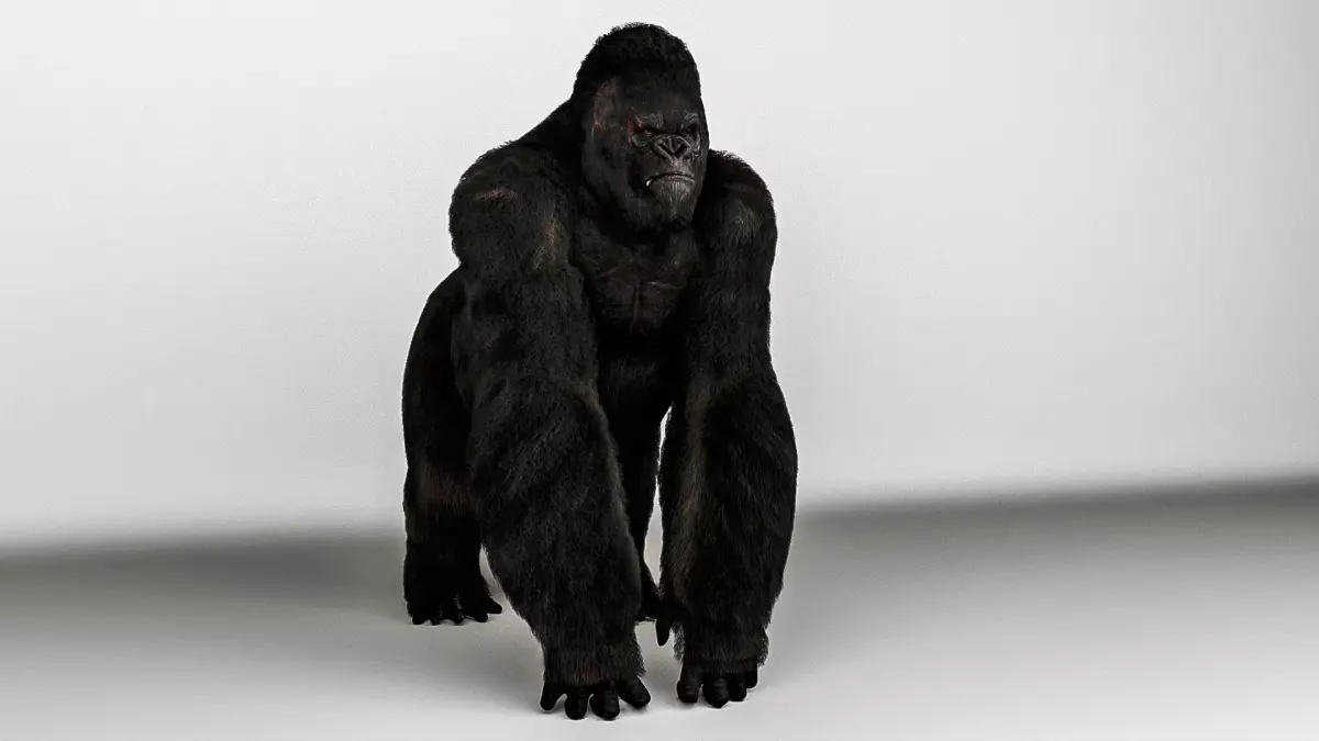 This is a highly detailed and realistic 3D model of a gorilla, ideal for use in films, games, animation, and visualizations. The model has been carefully crafted with a full fur system using hair particles for maximum realism. It includes high-resolution textures, clean topology, and realistic skin and fur shaders.