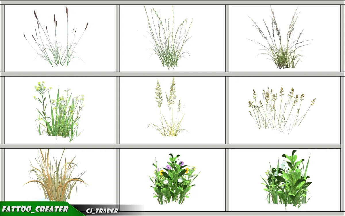 10 meshes: 10 ground grass modelsAll meshes have a LOD21 texture including skybox textureTexture Sizes - 4096x4096