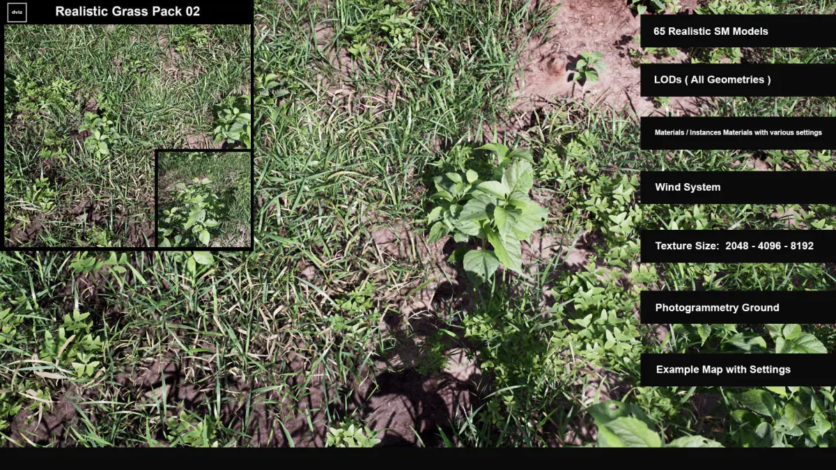 Dviz Grass Pack 02, is a photo-realistic grass pack optimized to Archviz . Can Be Use Game Dev. too. This package was designed with the goal to be photorealistic . All Geometries, Variations, Materials, and Textures were ideally designed.