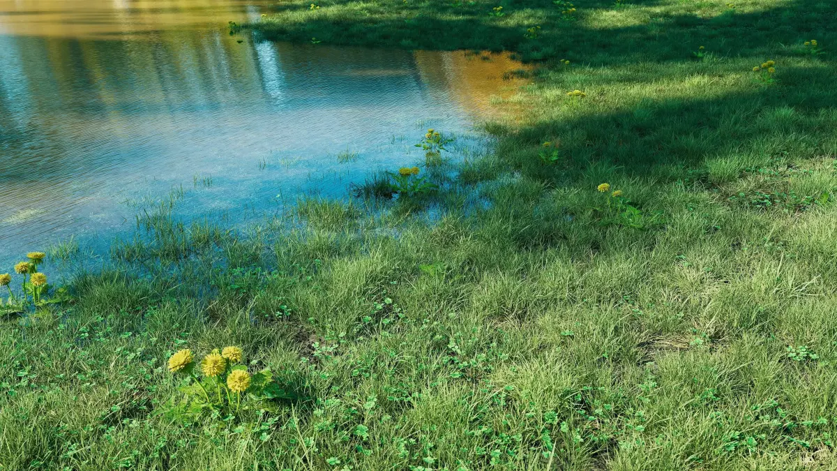 - Renders of the meadow are done using Main Patches, render of the park (with water) are done using Main Meshes.