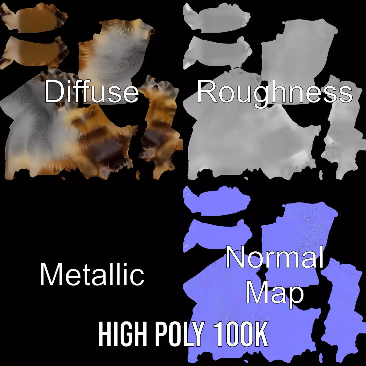 The photorealistic textures are PBR, including Diffuse, NormalMap, and reflection/roughness/metallic, which are suitable for modern rendering engines. All models are accurately unwrapped with no overlapping UVs. Perfect for wildlife simulations, nature documentaries, educational content, and video game environments.