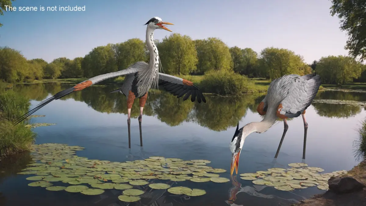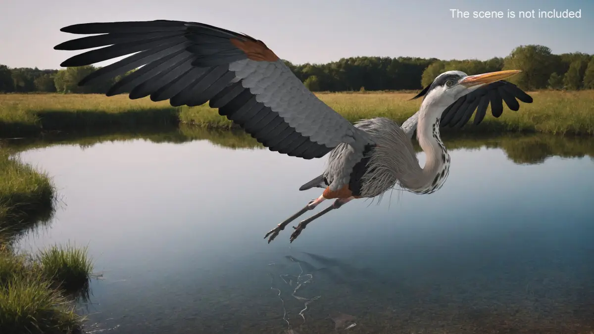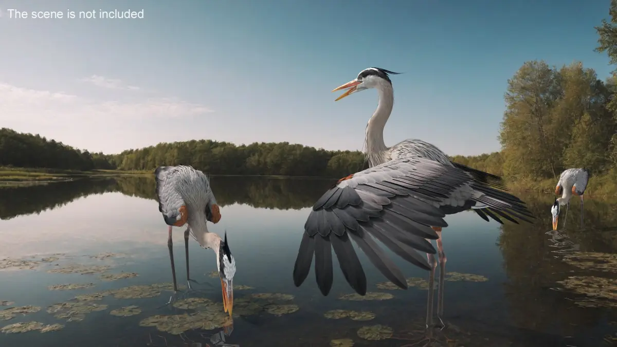 Realistic Great Blue Heron Rigged is a three-dimensional model of the Great Blue Heron (Ardea herodias), a large wading bird commonly found in wetlands across North and Central America.