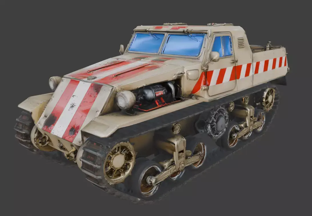 TagsSci-FiScoutHalf-TrackMilitaryVehicleReconnaissanceArmoredTrackedAll-TerrainPost-Apocalyptic3D-ModelGame-AssetRealisticWeatheredDesert-TanIndustrialTransportHard-Sci-Fi