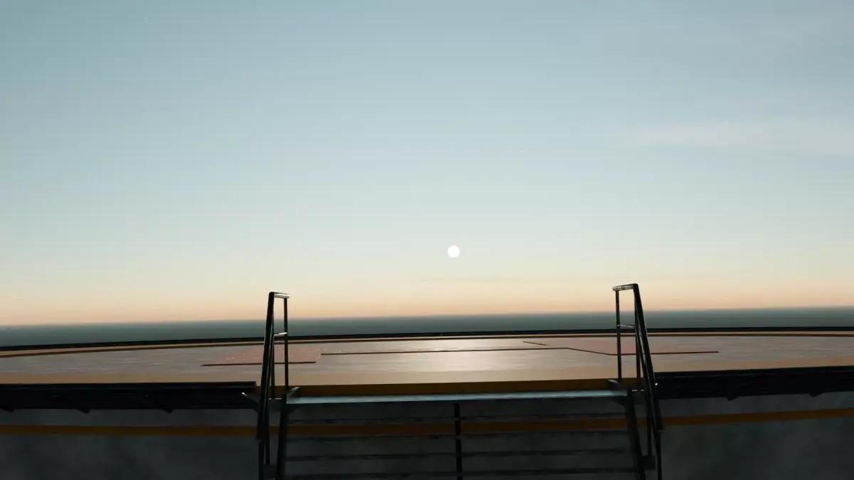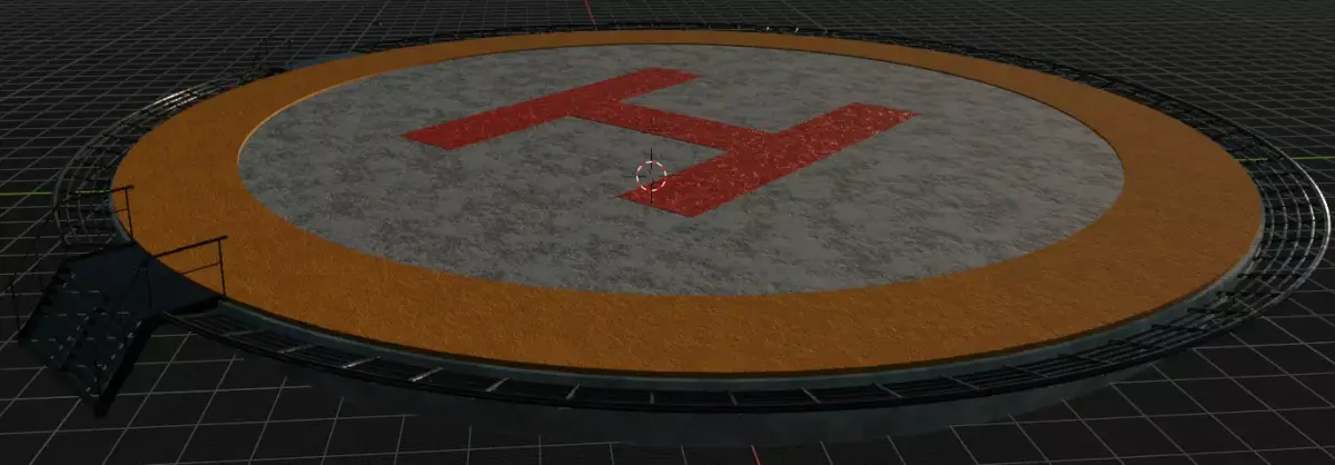 Tags / Keywords: helipad, helicopter landing pad, rooftop helipad, airport asset, industrial platform, PBR 3D model, stairs and railing, realistic environment prop, blender model, game asset.