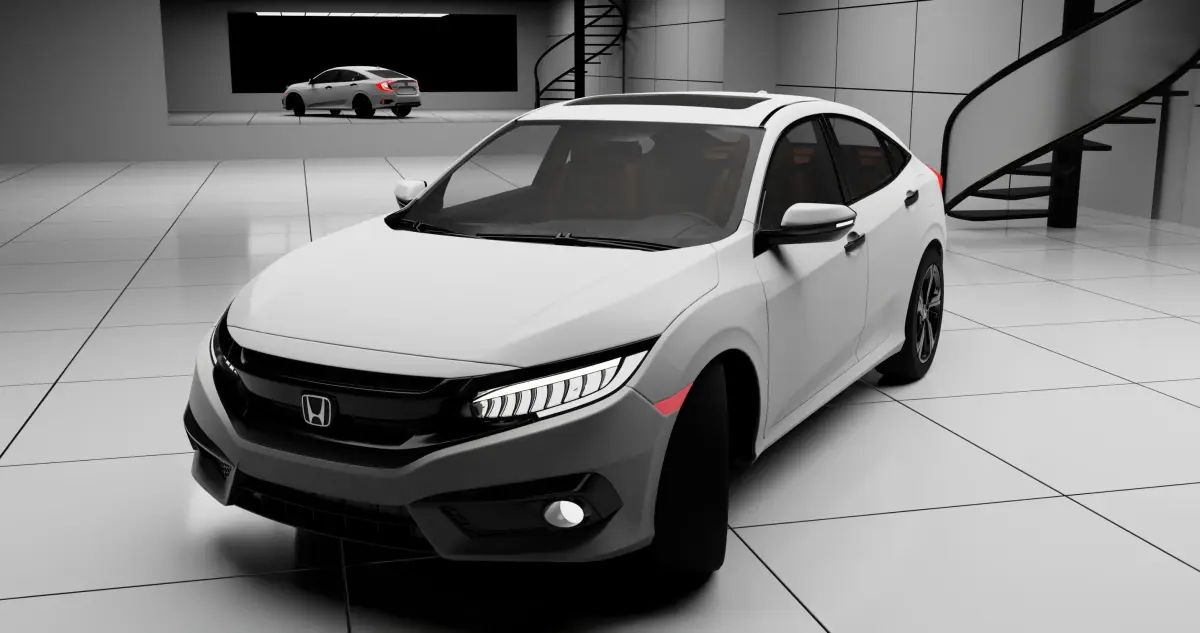 Step inside the virtual cabin, and you'll be greeted by an interior that exudes both sophistication and ergonomic excellence. Every button, knob, and stitch has been meticulously rendered to mimic the tactile experience of being behind the wheel. The dashboard's infotainment display comes to life with vibrant colors and sharp graphics, reflecting the Civic's cutting-edge technology and connectivity features.