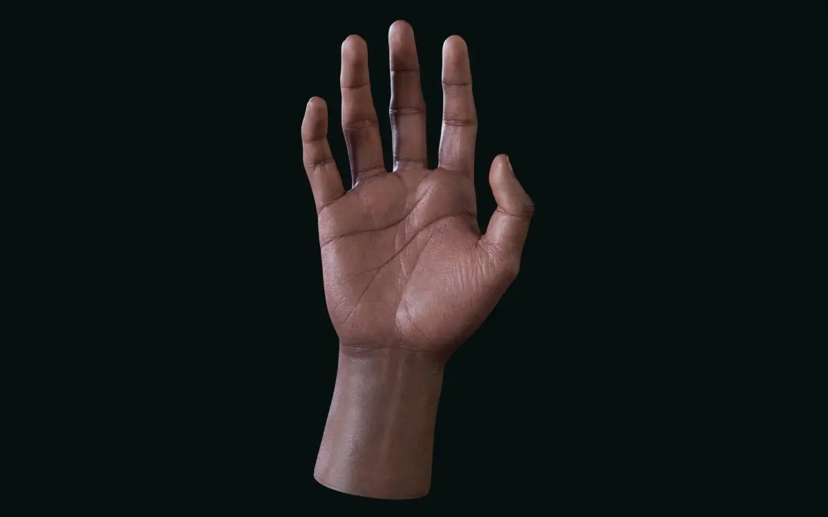 [DESCRIPTION]-High-detail realistic 3D model of a human male hand.