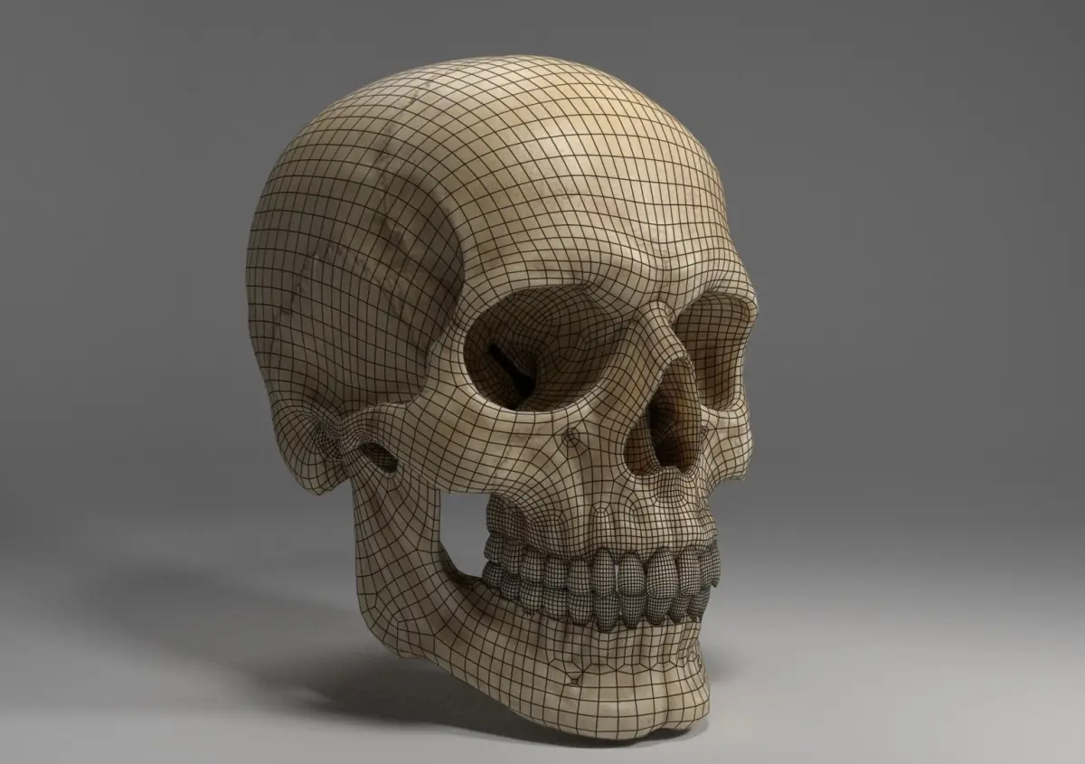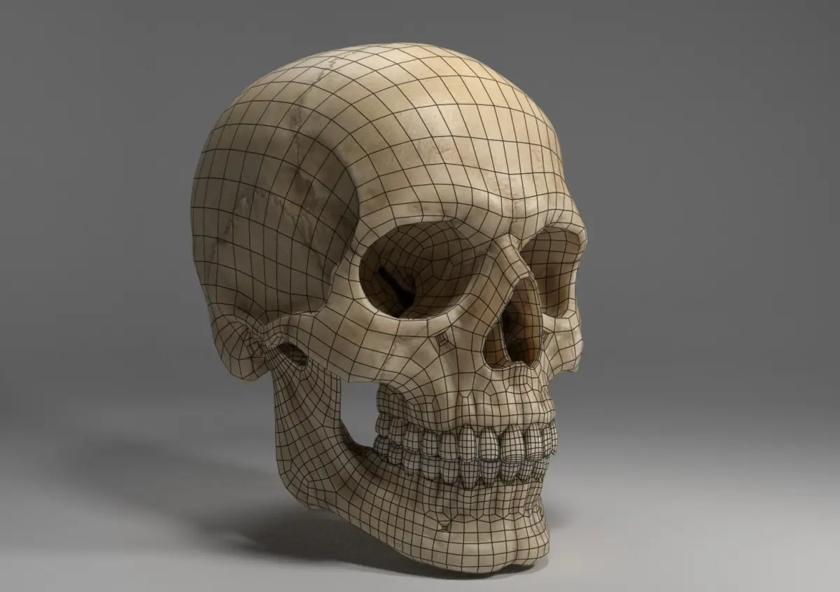 Manually sculpted and textured, highly detailed human skull. Ready for high-quality rendering.- Sculpted in Zbrush from reference images. - Retopology and UVs made in Maya. - Diffuse, normal and displacement maps baked in Zbrush from polypainted high-resolution sculpt. - AO and custom roughness/gloss maps made in Substance Painter.- Uses UDIMs for texturing|| Polygon Count ||- Low-resolution mesh:11 389 polys - Medium-resolution mesh:35 390 polys- High-resolution decimated mesh:2 148 590 polys- Full-Resolution Zbrush Sculpt: 32 106 752 polys|| Textures||- All textures are 4K- 3 UDIMS for each type of texture- All 'tif' files as well as 2 alternate 'exr' gloss and roughness files|| Other relevant notes ||- Includes displacement maps for high-detail renders. The Maya scene file included has been optimized for rendering with Arnold. Although you can still use the maps on any renderer.- All maps included require a 3D package that can handle UDIMs. Most 3D packages are UDIM-compatible, like Maya, 3DS Max, Marmoset Toolbag, etc. - Includes a render-ready Maya scene with lights, 2 different LOD meshes, a decimated high-resolution mesh, a Zbrush tool of the original sculpt for baking of new textures/ LODs and texture maps.- No skull interior or teeth roots. Not sculpted from a 3D-scanned base.