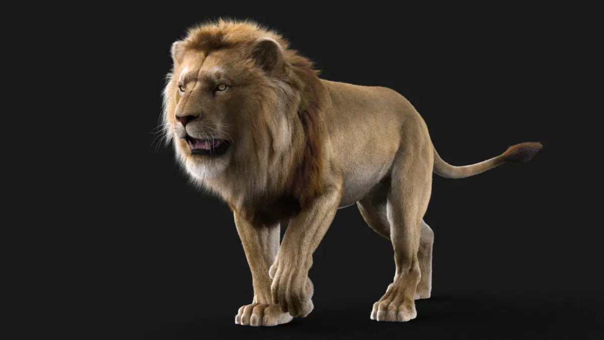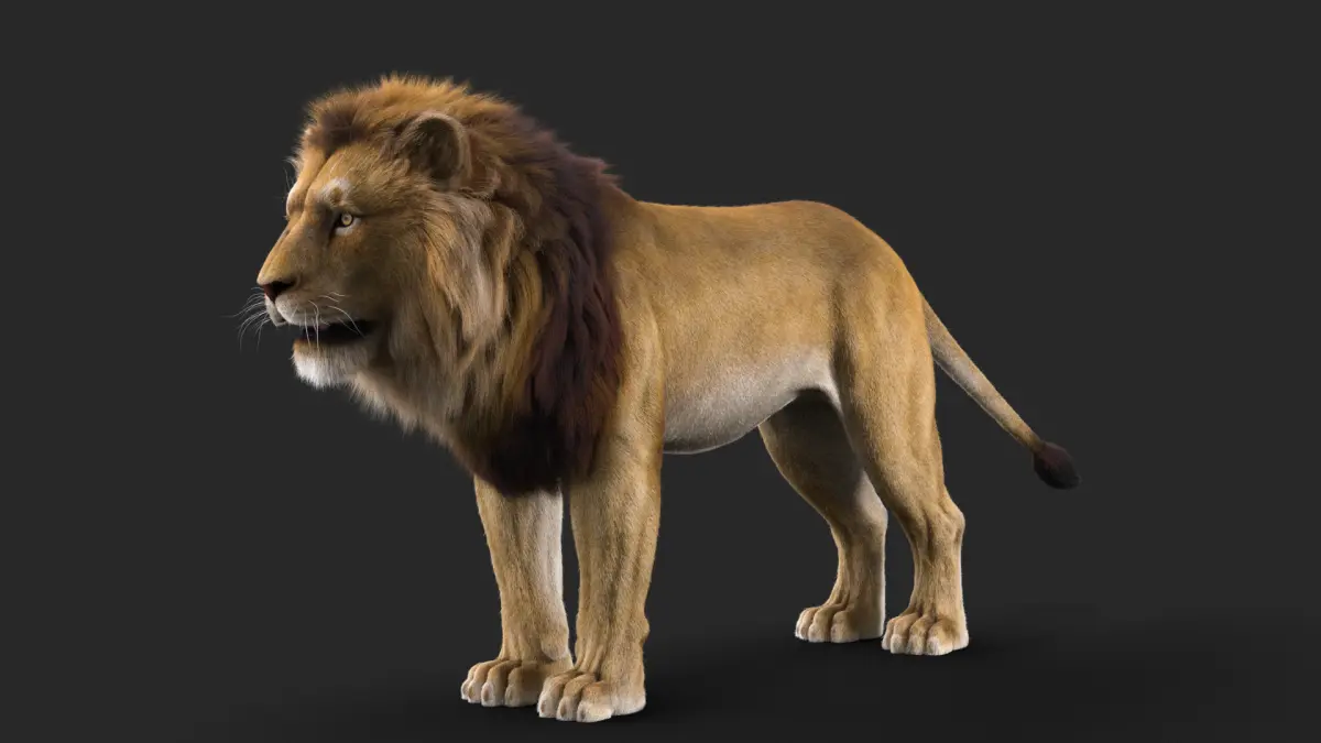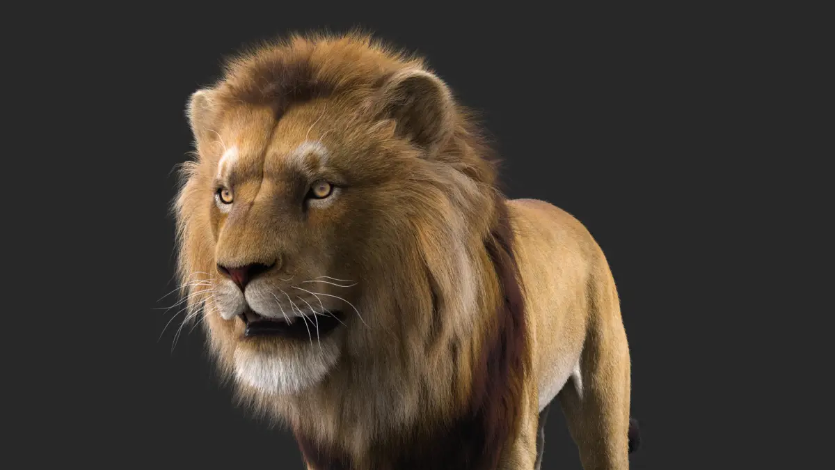This is a high-quality, production-ready 3D model of a realistic male lion, expertly crafted in Maya with XGen grooming and a clean, animation-ready rig. Ideal for use in film, TV, games, cinematics, advertising.
