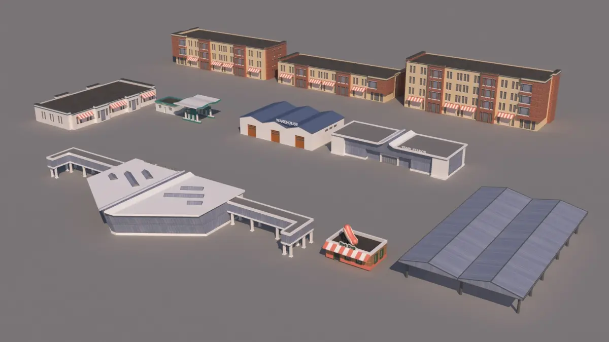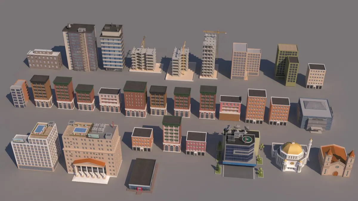 Realistic Low poly Cartoon City Modular Elements /Ready for animation& game/