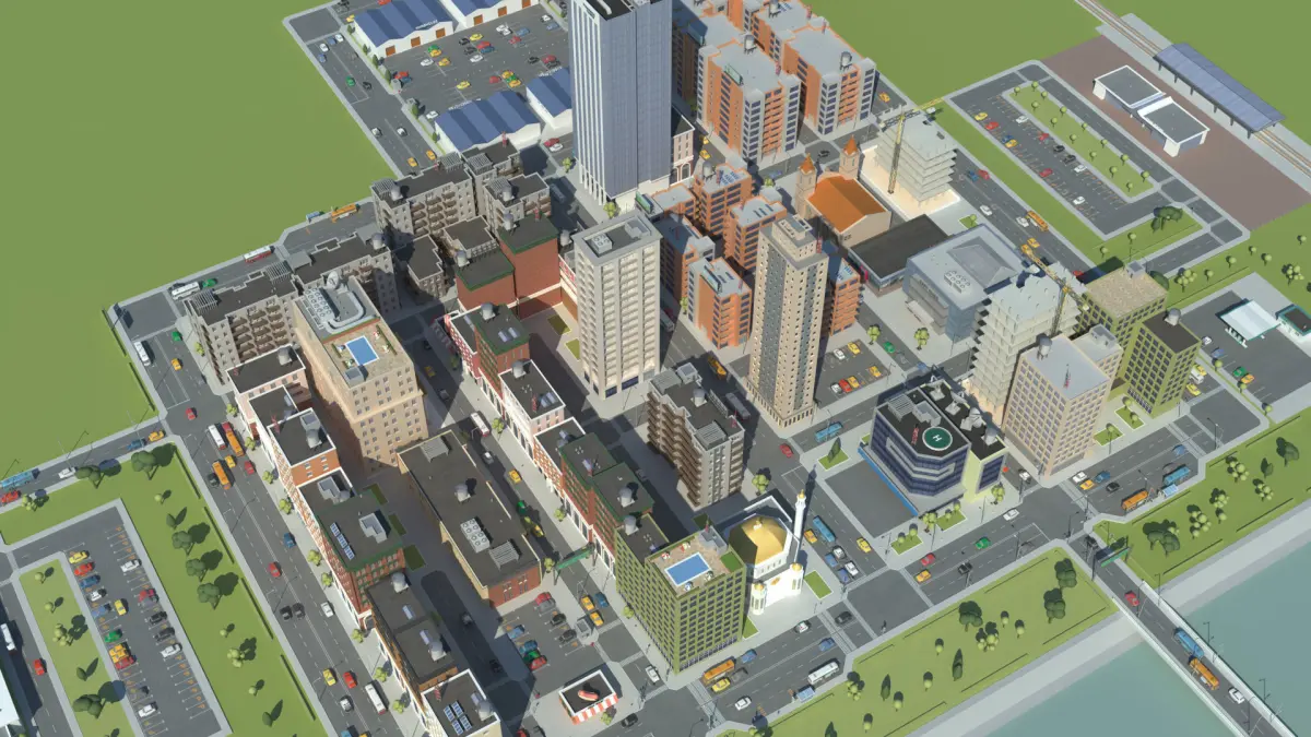 70+ different buildings include:-14 types of Skyscraper-City mall -Apartments -Hot pot house -Office buildings-Warehouse-Hospital-Catholic church-Mosque /Islamic church/-Train station building-Airport building -Car showroom-Ferris wheel-Gas station-Constructing buildingand other buildings