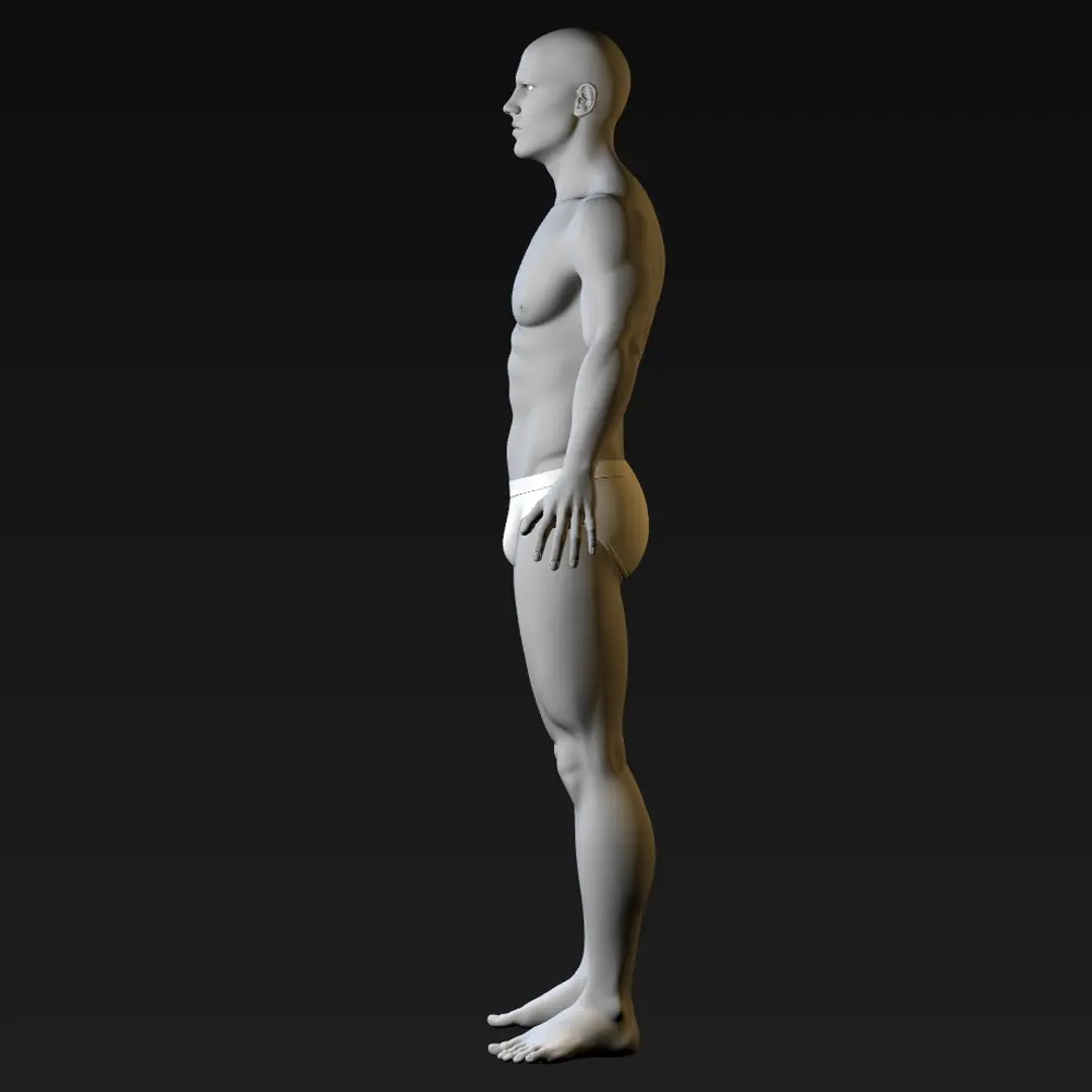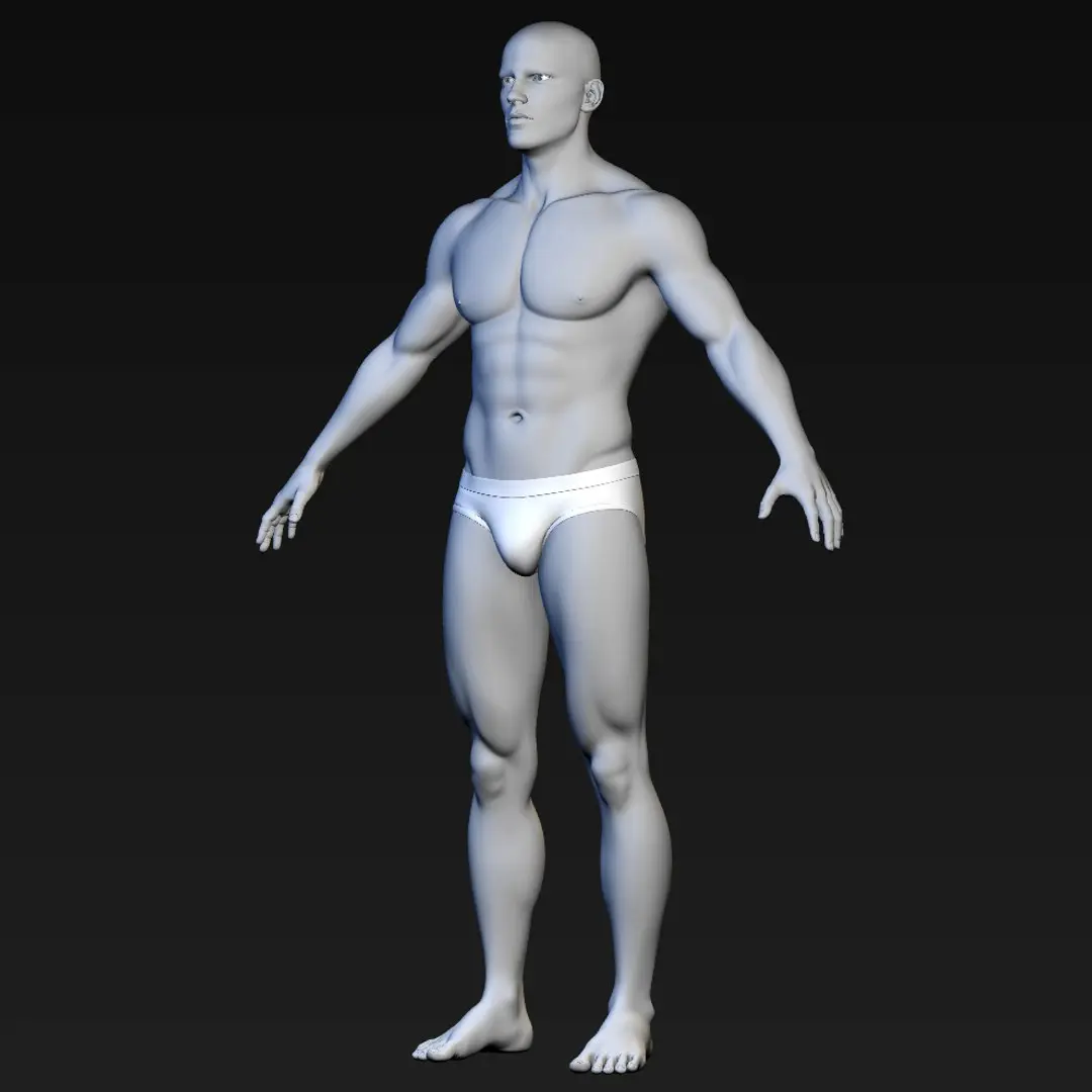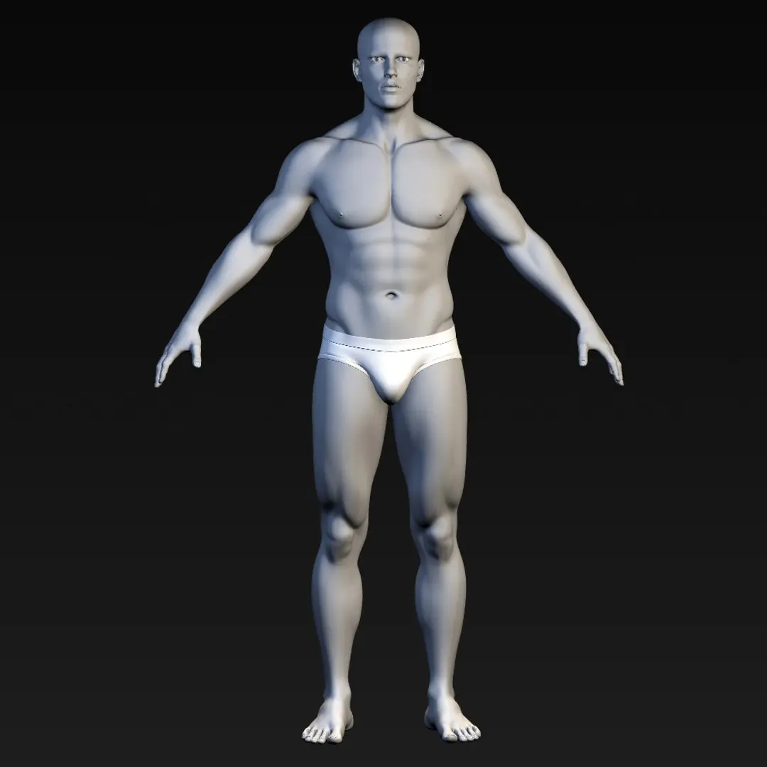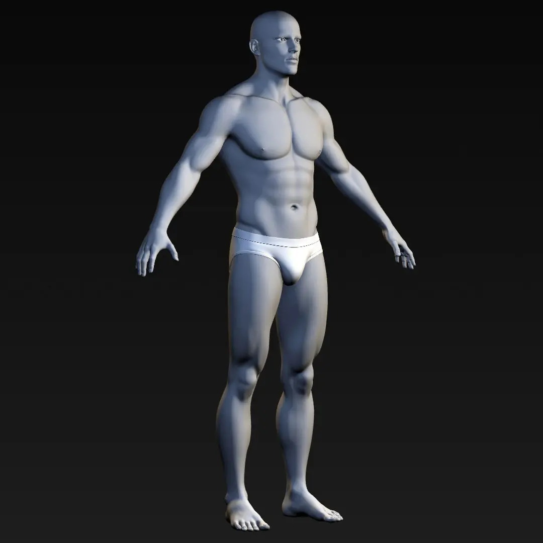 This is a high quality realistic male body character, a non-textured base human body.