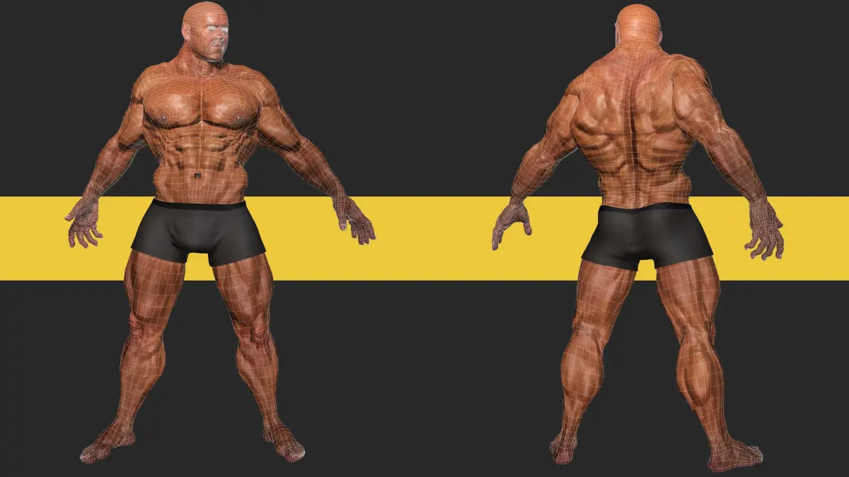This strong body builder with strong muscle and detailing in hisbody with texring he is to file of low poly and high poly this work refrence from reallt really bodybuilder in the really life