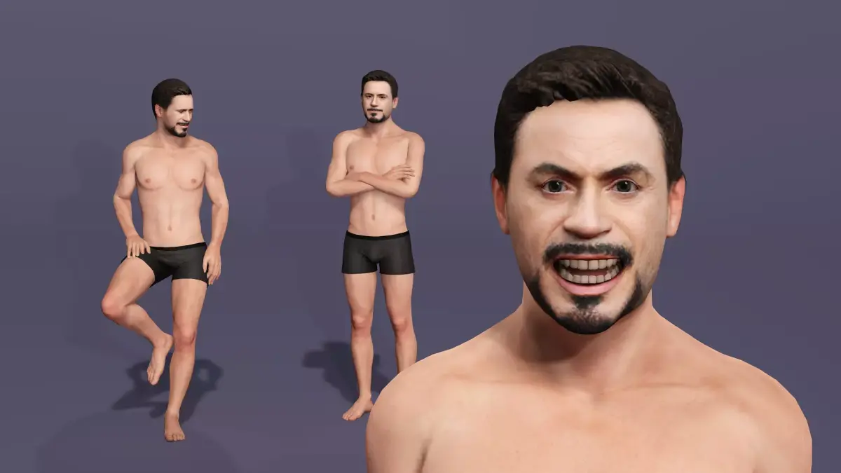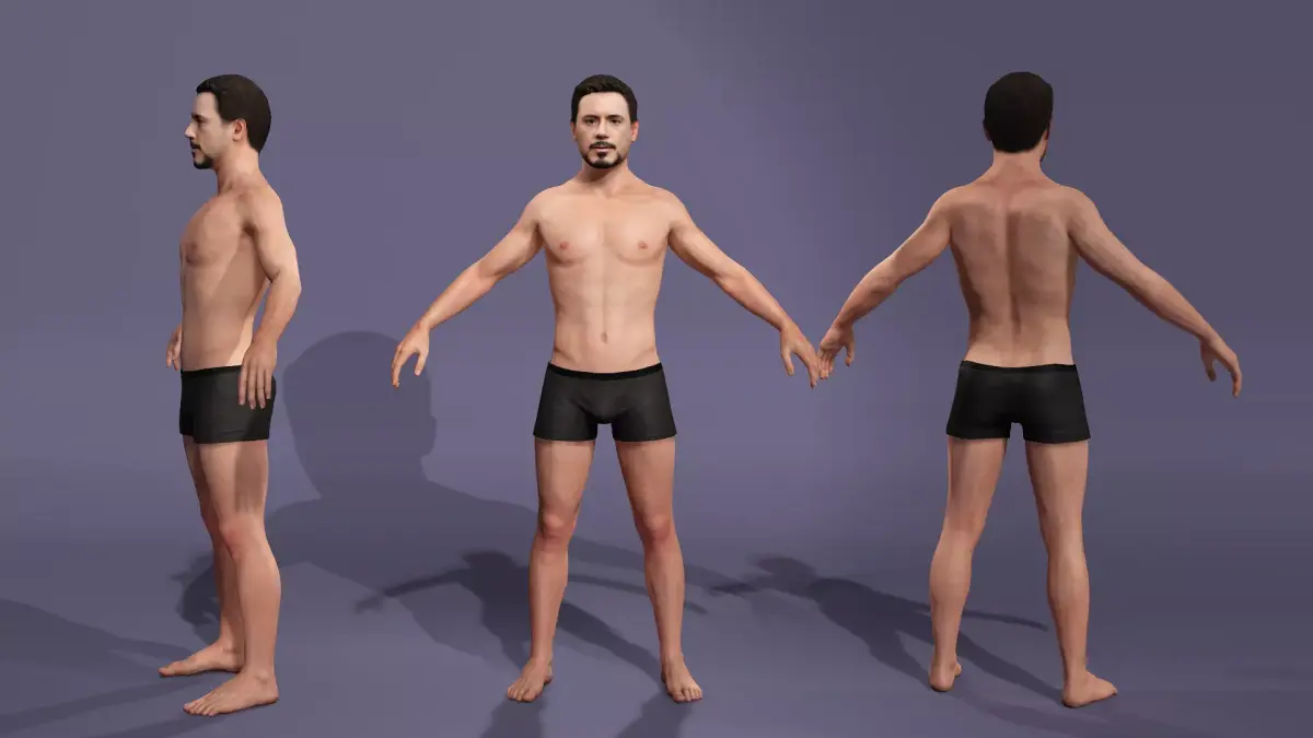Realistic Male 3D Model, the character is 90% similar to Robert Downey Jr version of ironman.