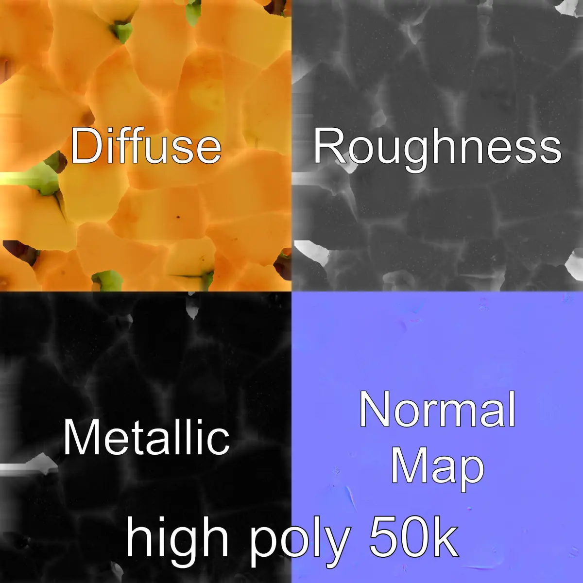 Each model has 3 levels of detail: low-poly, middle-poly, and high-poly, which allows for the use of this model in production rendering (such as 3ds Max, Maya, Cinema4D, Blender, Vray/Corona/Cycles, and all others), game engines (Unity and Unreal compatible), and interactive presentations, providing a choice of detail based on the LOD System principle. This realistic mango model is perfect for food visualization, product advertising, or tropical-themed scenes. The model's textures are PBR, Diffuse, NormalMap, and reflection/roughness/metallic, which are suitable for any modern rendering engine. All models are accurately unwrapped and have no overlapping UV. All textures are 4096*4096 in size. If you liked this model, please like and leave a comment!