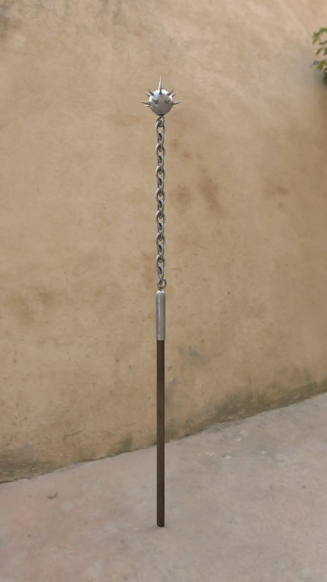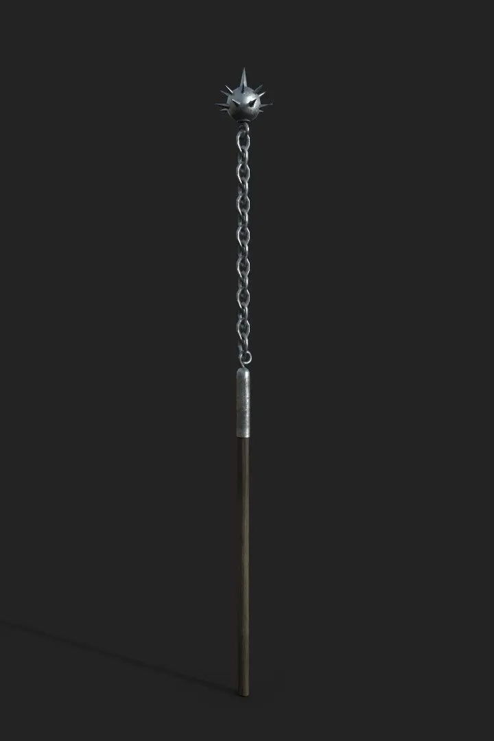 The pack contains 2 medieval flails built to real world scale based on archeological data and replicas. One mesh represents a 2-handed flail. The other mesh is a smaller 1-handed flail.