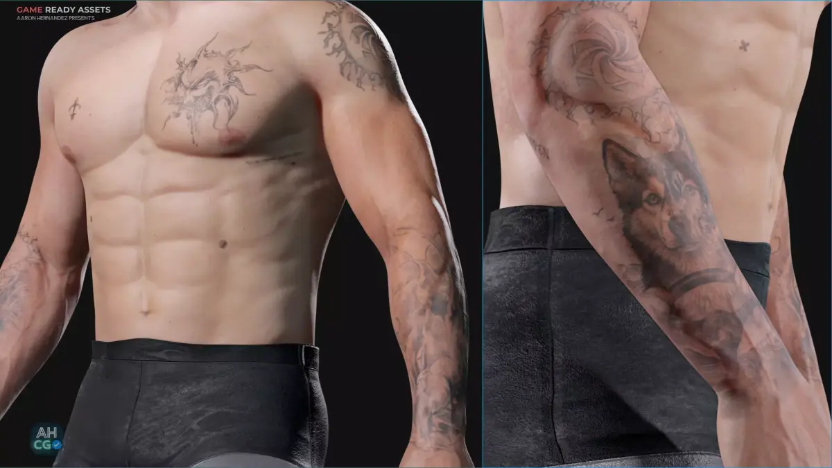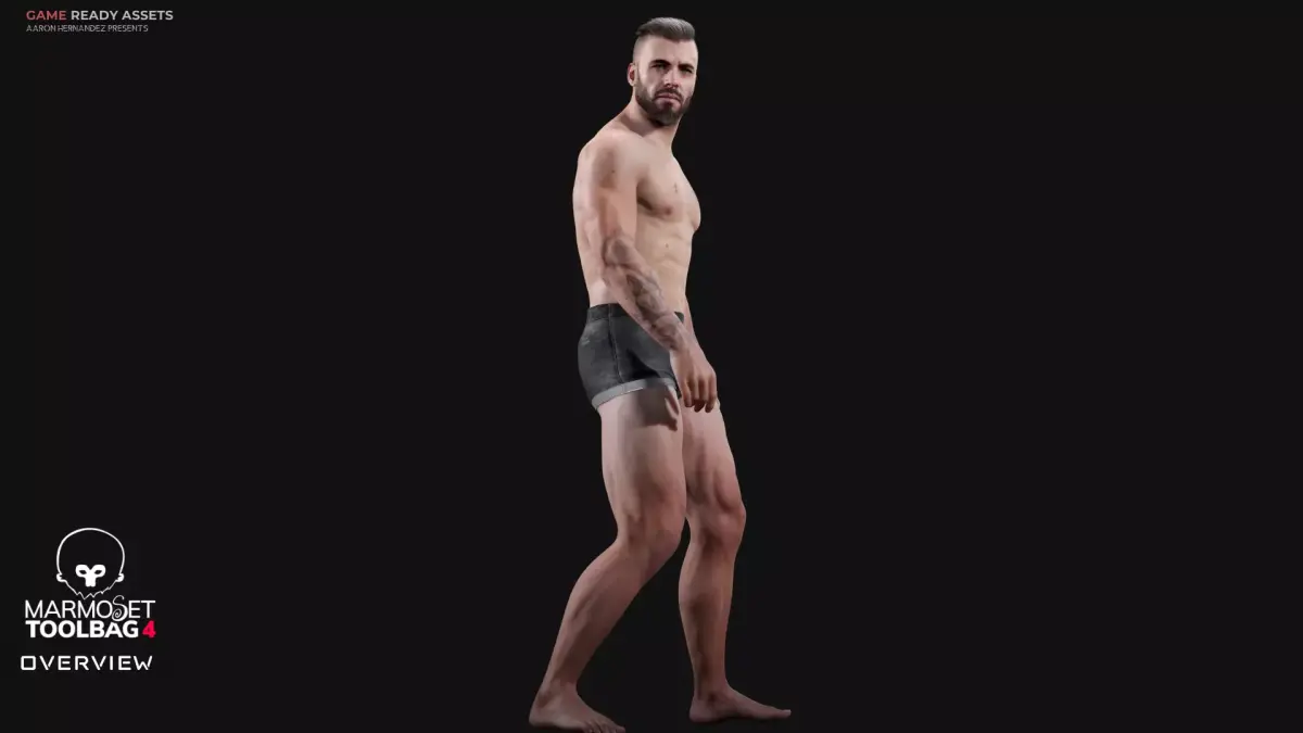 Promos rendered in Marmoset Toolbag 4, There's two skin textures set one with scars, tattoos and other without them for personal customization, download textures folder to get the full pack of character customization such eyes etc.