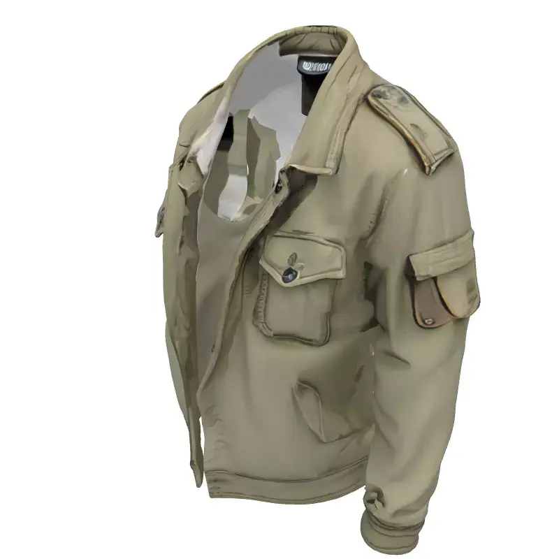 This is a meticulously crafted 3D model of a realistic military-style field jacket, presented in a versatile olive green color. The model boasts exceptional detail, capturing the essence of rugged utility wear with its prominent chest pockets, shoulder epaulets, and buttoned cuffs. Intricate stitching patterns and fabric folds enhance its authenticity, making it suitable for a wide range of virtual applications. This asset is ideal for integrating into game development projects, providing realistic character clothing for NPCs or player avatars in various genres, from action-adventure to open-world simulations. It can also be effectively utilized in virtual fashion presentations, digital art compositions, and augmented reality (AR) or virtual reality (VR) experiences to bring a touch of genuine realism. Furthermore, its high fidelity makes it perfect for high-quality static renderings in film production, architectural visualization scenes, or animation sequences. The model features clean, optimized topology, ensuring smooth deformations and efficient performance in real-time engines. It is fully UV unwrapped with a non-overlapping layout, ready for PBR (Physically Based Rendering) texture integration to achieve photorealistic results across different lighting conditions. Supported file formats likely include GLB, OBJ, FBX, USD, DAE, ABC, STL, and PLY, offering broad compatibility across 3D software and engines.