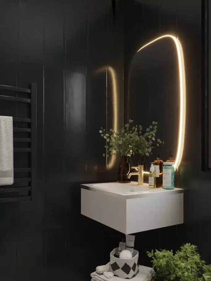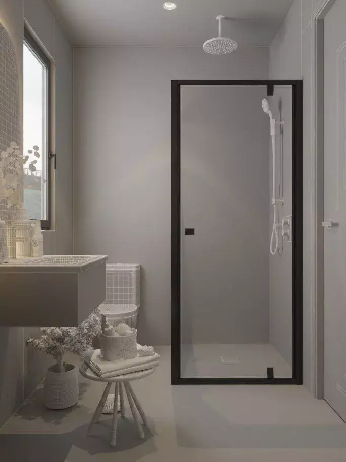Max with V-Ray. The scene includes a wall-mounted vanity with ribbed paneling, a backlit organic-shaped mirror, a glass-framed shower cabin, a modern toilet, accessories, plants, towels, and carefully curated decor items.All materials use optimized V-Ray shaders with clean PBR workflows, balanced reflections, and accurate lighting behavior. Geometry is clean, well-organized, grouped, and named for stress-free editing.Lighting is set up for both realistic still renders and animation-ready output, using a mix of soft indirect illumination and controlled highlights.This scene is ideal for interior designers, archviz artists, and anyone who wants a polished, ready-to-render bathroom without spending days modeling pipes and tile grout. Just open, render, and pretend you slept last night.