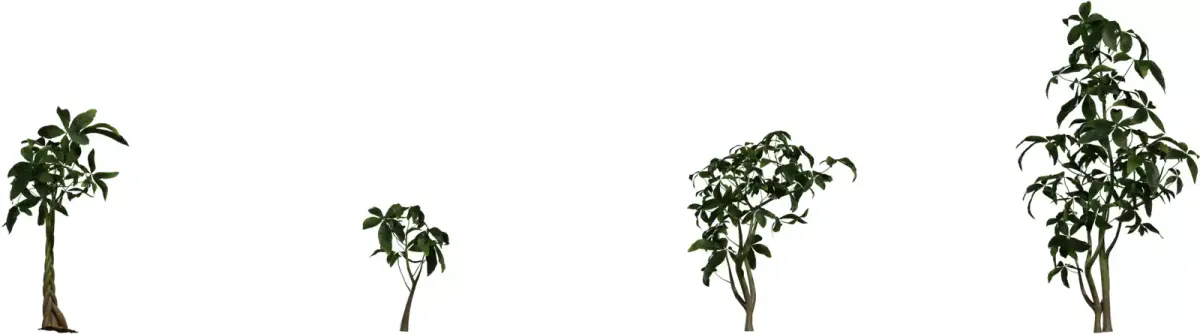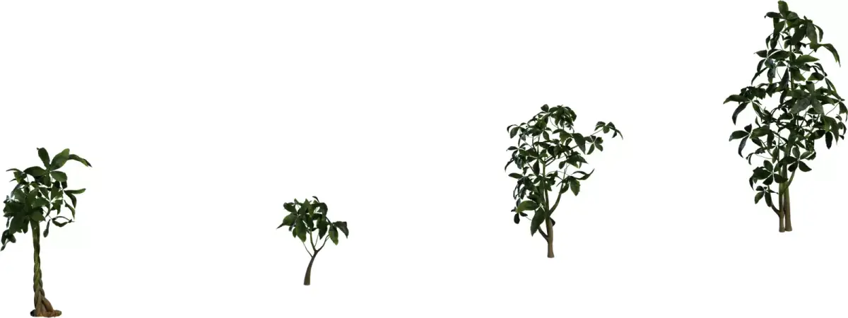 This asset is a collection of realistic money tree 3D models featuring braided trunks and lush green foliage, ideal for interior visualization, games and real‑time experiences. The set includes several growth variations from small potted‑plant size to tall floor plant, so artists can populate rooms with consistent but non‑repetitive greenery. Each model uses a clean, optimized mesh with a balanced polygon count, suitable for real‑time engines such as Unreal Engine and Unity as well as offline rendering.