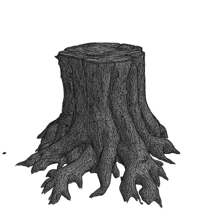 This meticulously crafted 3D model presents a highly realistic tree stump with a complex network of exposed roots, perfect for enhancing any natural or fantasy environment. The model features intricate bark textures, visible growth rings on the cut surface, and finely detailed moss patches strategically placed on the roots and stump for added organic realism. Its high level of detail makes it ideal for close-up shots in architectural visualizations, film, and animation projects, where visual fidelity is paramount. Furthermore, with appropriate optimization, it can serve as a compelling environmental asset for game development, virtual reality (VR), and augmented reality (AR) applications, adding depth and authenticity to digital landscapes. The model is built with clean, efficient topology, ensuring smooth deformations if rigged, although primarily designed as a static prop. It comes fully UV unwrapped with a non-overlapping layout, ready for advanced texturing workflows. PBR (Physically Based Rendering) textures are included or implied, ensuring a realistic appearance under various lighting conditions. Supported file formats typically include GLB, OBJ, STL (for static printing), ABC, DAE, FBX, USD, and PLY, offering broad compatibility across different 3D software and game engines. This asset is perfect for creating immersive forest scenes, ancient ruins, garden landscapes, or any setting requiring a natural, weathered tree element, offering significant visual impact and versatility for various creative endeavors.