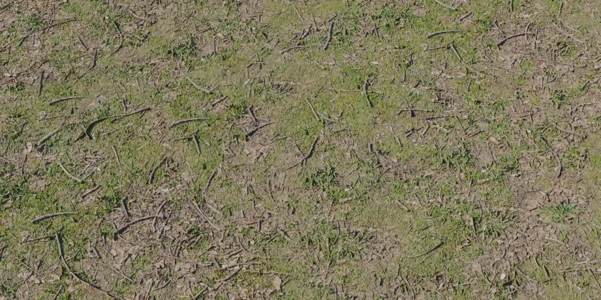 This is an ultra high quality real world muddy grass ground PBR material created through photogrammetry scanning. The surface contains realistic small green grass patches mixed with dried soil, broken twigs, crushed leaves and natural organic debris. This texture is perfect for realistic environment building where the ground is not fully grassy, not fully soil – but a natural mix found in forests, parks, hiking trails, open fields, countryside roads and natural outdoor areas.