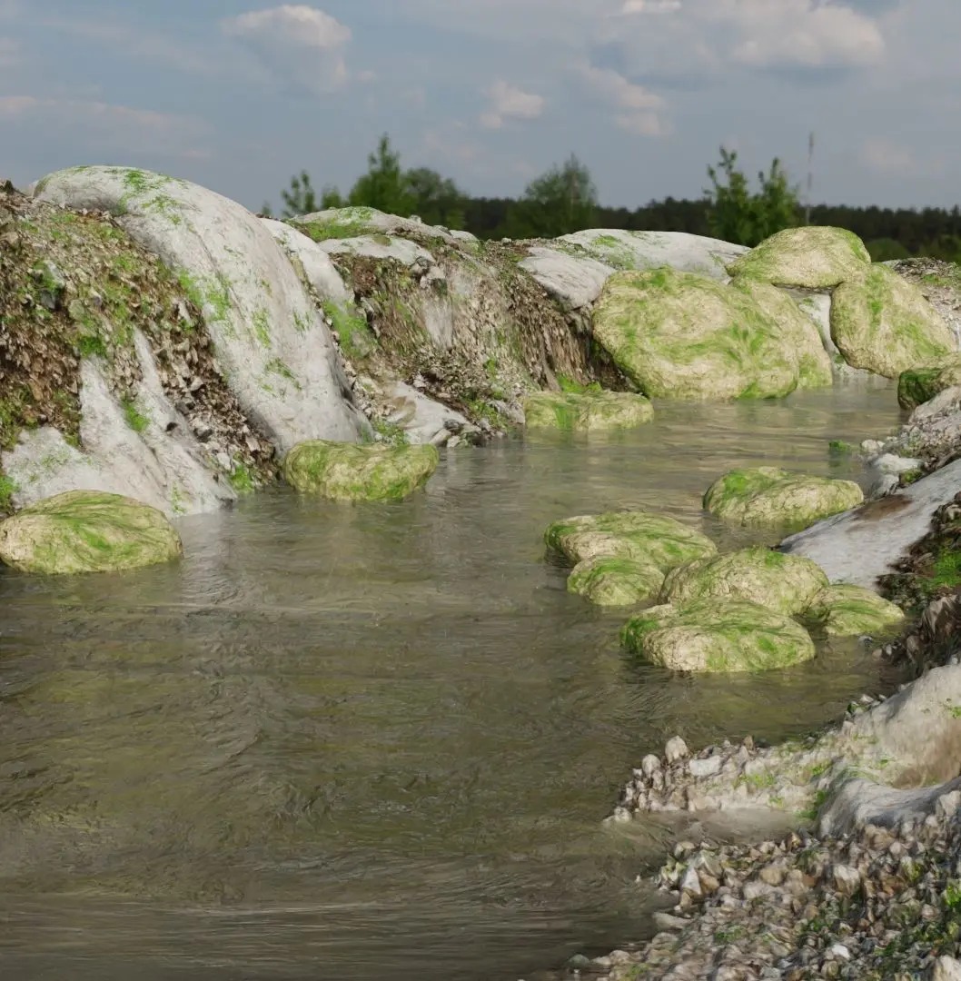 REALISTIC NATURE PROJECT YOU CAN OPEN IN ANY 3D SOFTWARE MULTI FILES - IN RAR - FBX | OBJ | STL | BLEND OFFICIAL OBJECTS NAME - GROUND | ROCK | WATER | GRASS AND BACKGROUND ENVIRONMENT FOR REALISTIC LOOK MATERIAL + TEXTURES IF YOU OPEN IN BLENDER SOFTWARE YOU'll GOT WATER ANIMATION FOR THE SCENE RENDER CYCLES ENGINE
