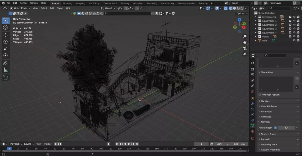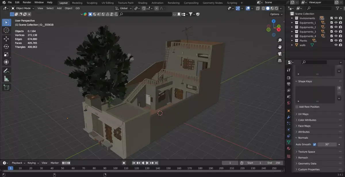 This is a highly detailed and realistic 3D model of an old Asian village house, designed in Blender and textured with PBR materials for maximum realism. The model is fully furnished with vintage furniture and traditional props, making it ideal for architectural visualization, animation, or game environments.