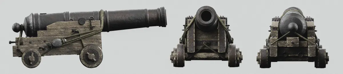 Old worn naval cannon used in the 18th-19th centuries, created as a personal project. The model is game-ready (1:1) with high-resolution textures exported from Substance Painter, following an easy-to-understand naming convention.