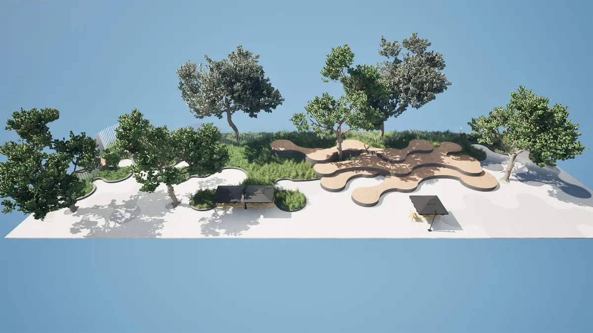 This beautiful park 3D scene is perfect for adding a touch of nature to your next project. It features a curving fence, planters, stone pine trees, a small pool, and outdoor furniture. The scene is highly detailed and realistic, and it is fully compatible with all major 3D software packages.