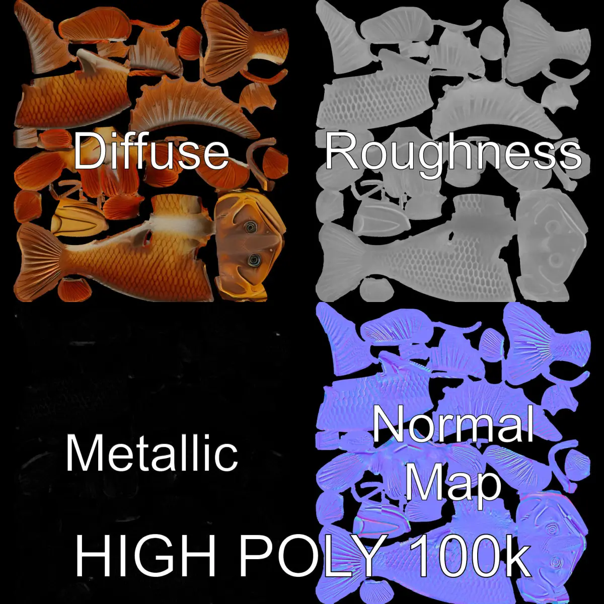 This high-quality perch fish model pack offers three levels of detail - low-poly for mobile (1000 triangles), middle-poly for environment (10,000 triangles), and high-poly for production rendering (100,000 triangles). It’s perfect for use in game engines like Unity and Unreal, as well as for production rendering in software such as 3ds Max, Maya, Cinema 4D, and Blender. Ideal for realistic aquatic environments, educational simulations, or animation projects, this model's advantages include PBR, diffuse, normal map, and reflection/roughness/metallic textures. Models are accurately unwrapped with no overlapping UVs, and all textures are 4096*4096 in size. The first image serves as the reference used for creating the 3D model. Evaluate the model's quality by examining the preview images that display the topology and polygonal mesh. Please like and comment if you enjoy the model.