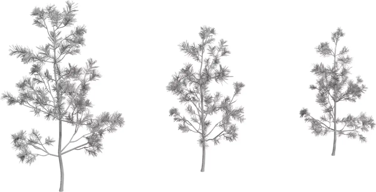 This asset is a set of three realistic pine sapling 3D models designed for exterior visualization, games and real‑time environments. Each tree has a unique silhouette and natural branch structure, so repeating them in a scene still looks organic and non‑uniform. The models are optimized for medium‑to‑large environments, with a clean quad‑dominant mesh, reasonable polycount and efficient UV layout for fast rendering in engines like Unreal Engine, Unity or offline renderers.
