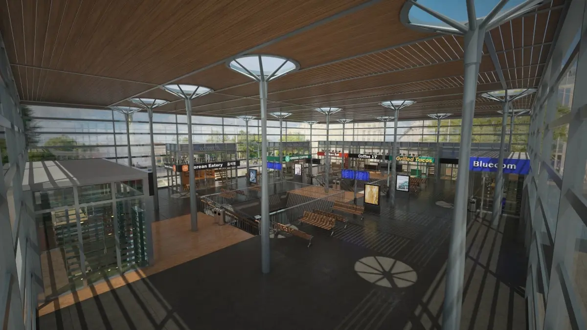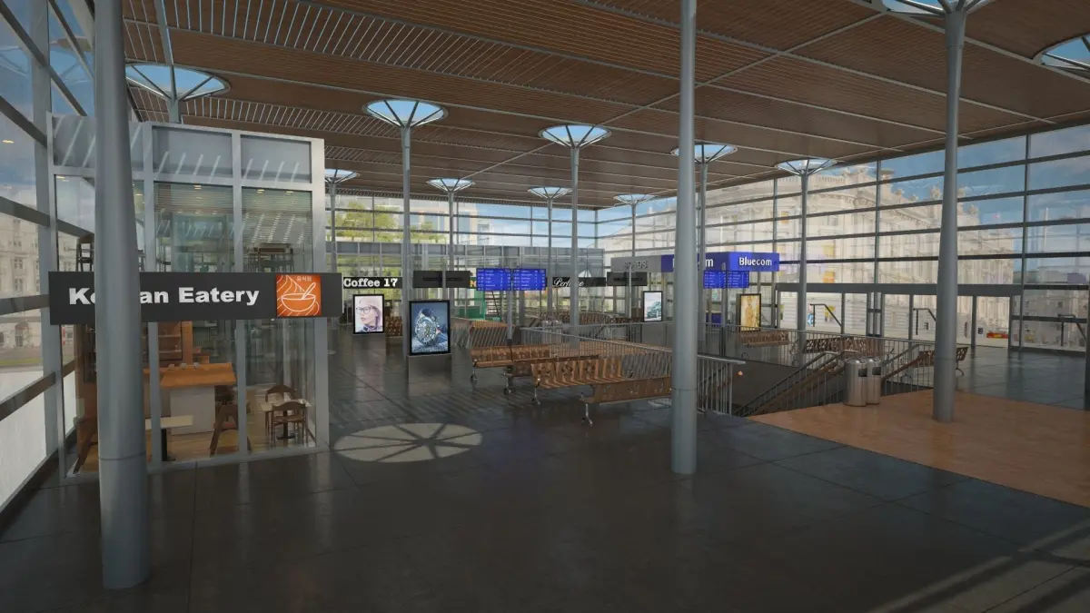 The 3D model of a rail train station created using Cinema 4D and Vray is incredibly detailed. The model includes a shopping center and restaurants adding to its realism and complexity. The attention to detail in the design makes the station come to life making it a visually stunning creation. This type of intricate 3D modeling can be used for various purposes such as architectural visualization or animation projects. Overall the combination of Cinema 4D and Vray has resulted in a highly realistic and immersive representation of a modern train station.