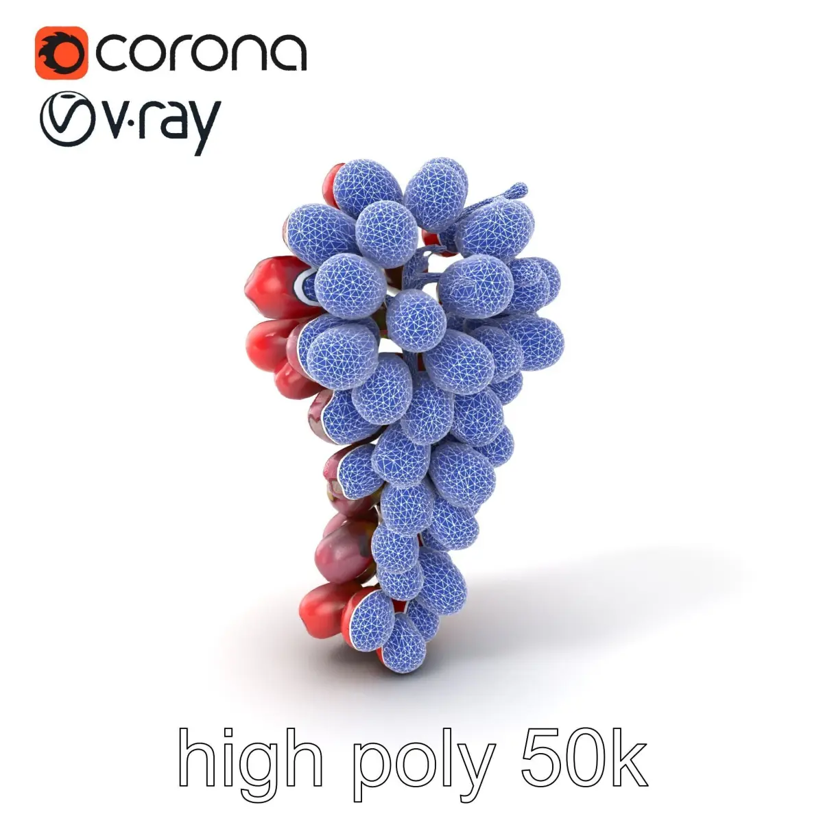 Each model has 3 levels of detail: low-poly, middle-poly, and high-poly, which allows for the use of this model in production rendering (such as 3ds Max, Maya, Cinema 4D, Blender, Vray/Corona/Cycles and all other), game engines (Unity and Unreal compatible), and interactive presentations, providing a choice of detail based on the LOD System principle. Ideal for food presentations, vineyard simulations, or wine commercials due to its realistic texture and structure. The model's textures are PBR, Diffuse, NormalMap, and reflection/roughness/metallic, which are suitable for any modern rendering engine. All models accurately unwrapped and have no overlapping UV. All textures are 4096*4096 in size. If you like the model, please leave a comment and like!