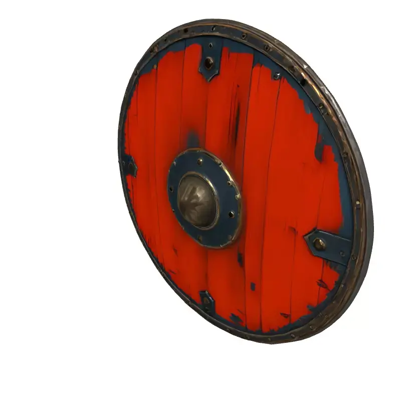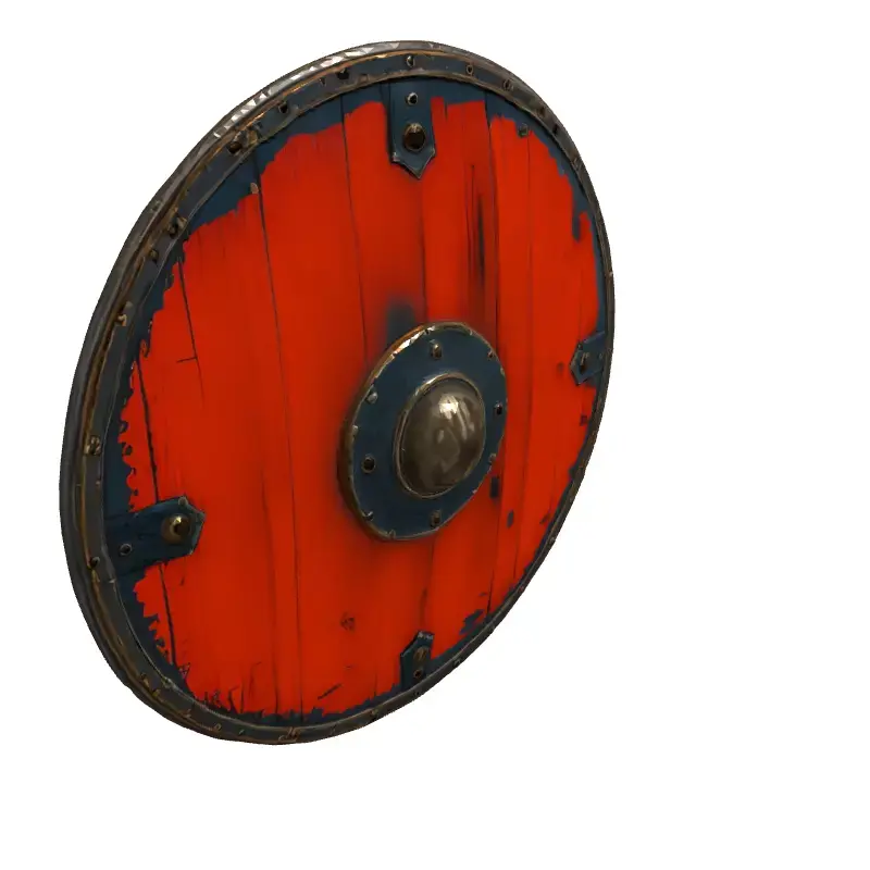 This 3D model depicts a meticulously crafted, realistic red Viking round shield. Ideal for game development, historical visualizations, or even 3D printing, this asset adds a touch of authenticity to your projects. It's suitable for both real-time applications like games and AR, as well as high-quality static renders. Available in multiple formats including GLB, OBJ, STL, FBX, and DAE, ensuring seamless integration with various software. The model features a low-poly count optimized for performance without compromising visual fidelity. Its clean topology, UV unwrapped surfaces, and PBR textures contribute to a realistic wood and metal appearance with worn paint details, making it ready for immediate use. The shield's design is historically inspired, capturing the essence of Viking craftsmanship and warfare. Whether equipping your game characters or populating a historical scene, this shield is a versatile addition to your digital arsenal.