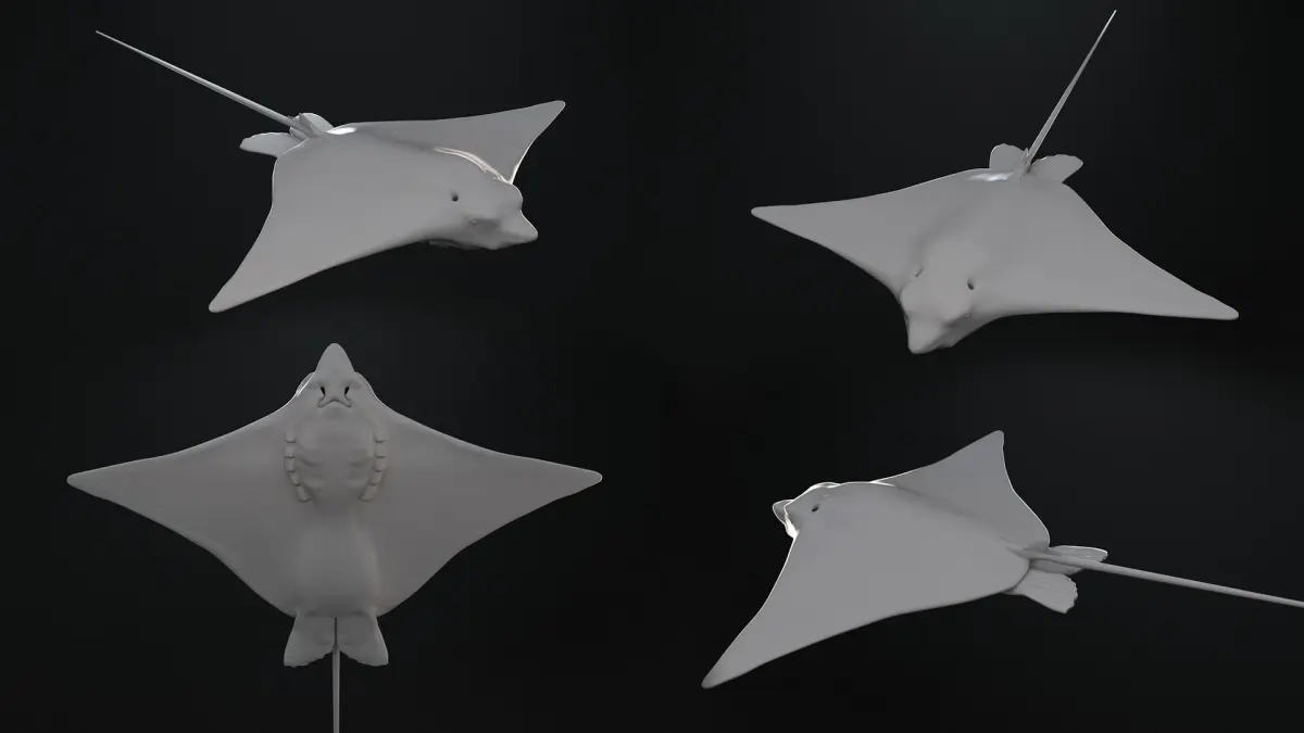 Fully rigged & textured Spotted Eagle Ray. Mesh all in quads, UV unwrapped (1x 4K UV Tile)3 geo files (abc, fbx or obj)1 swimming animation (not a swimming cycle)1 rigging fileAll texture files (COL, RGH, HGT, SPC...)Real scale (Maya scale)Ready for renderingReady for animationCheck out demorig & textured turn on Ytb