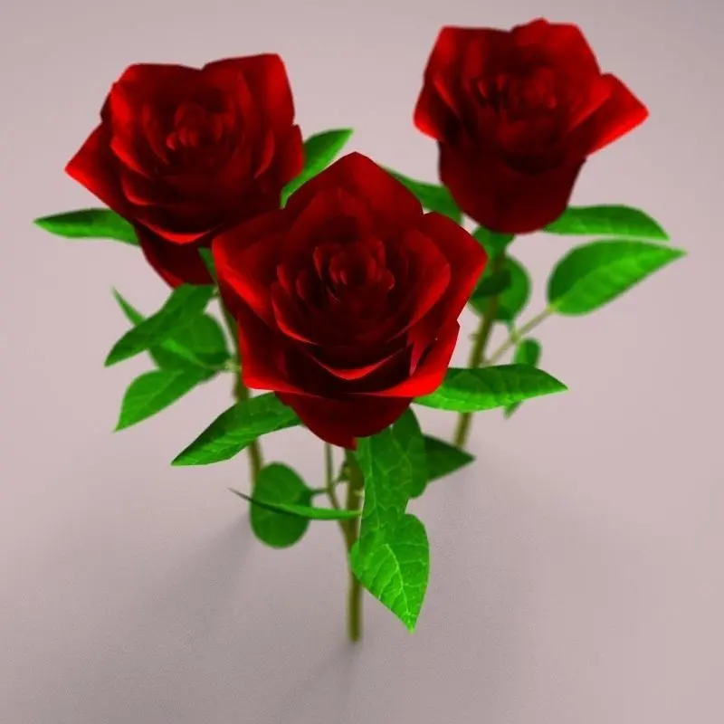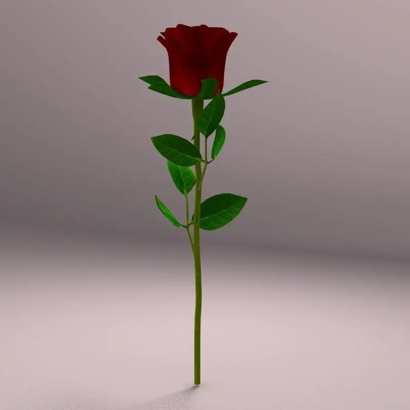 Textured model of a rose. This prop is best suited for medium distance renders. Originally modeled in Lightwave. Textures were created using Photoshop. Petals share same UV coordinates, otherwise unique UV coordinates. The model is ready render and to be used in any production environment.