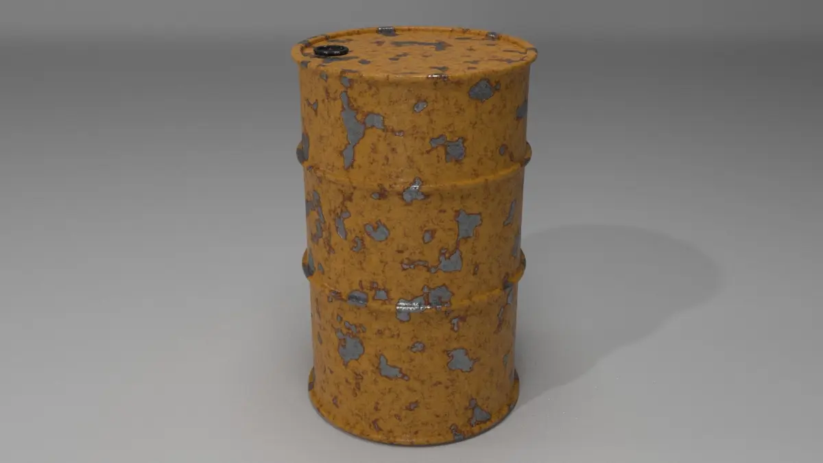 Photorealistic rusty barrel with procedural materials.