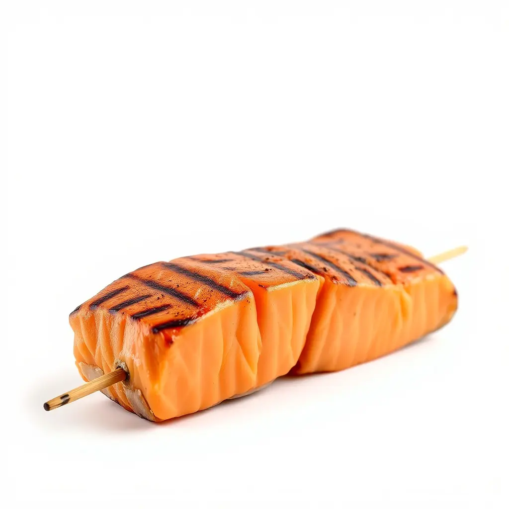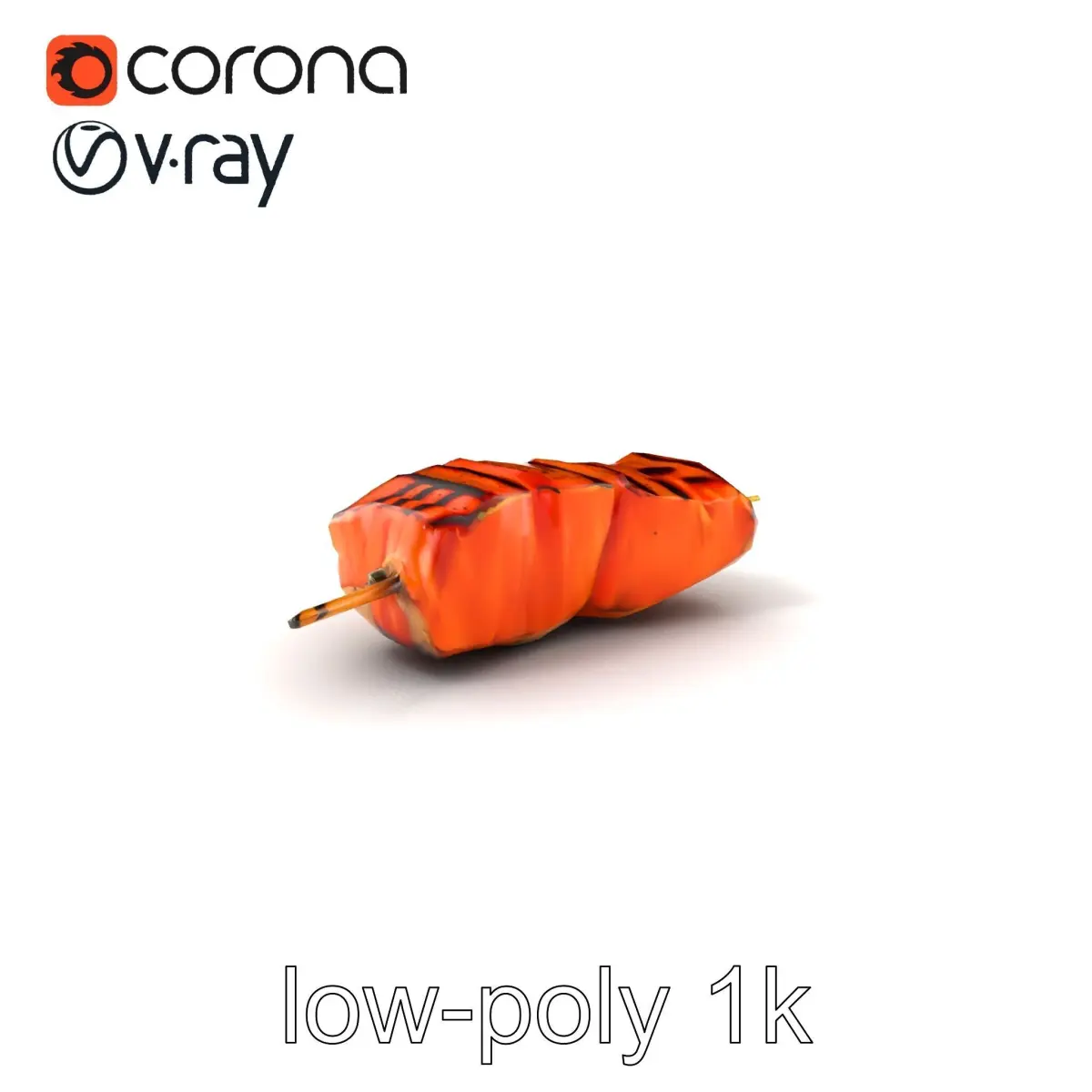 This realistic salmon kebab model, highlighted with detailed grill marks and vivid salmon texture, is perfect for use in culinary presentations, cooking simulations, and virtual restaurant environments. It offers an authentic portrayal in bright salmon hues intertwined with subtle browning, making it ideal for high-quality graphics applications.