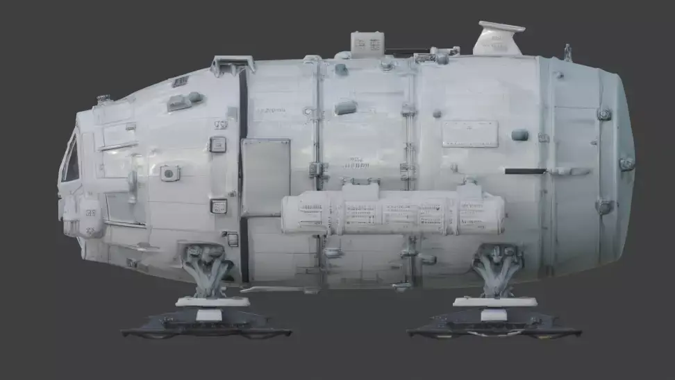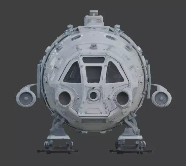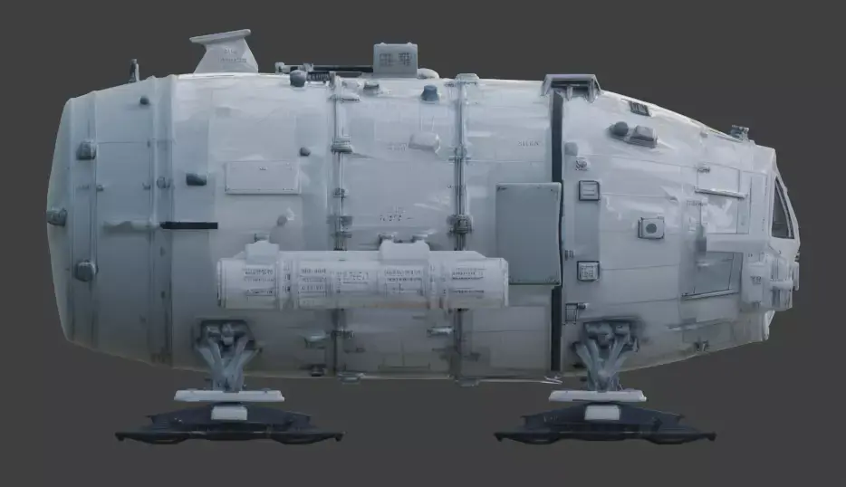 Tagscommand module sci-fi arctic polar research station vessel snow ice white landing skis spaceship pressurized hull aerospace industrial asset prop studio shot planetary vehicle