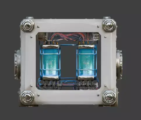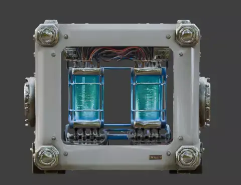 Tagsgenerator scifi power modular energy core futuristic industrial machinery cyberpunk glowing blue plasma mechanical prop asset electric equipment reactor battery