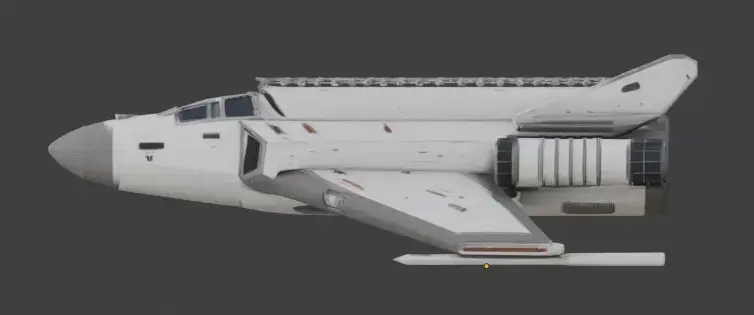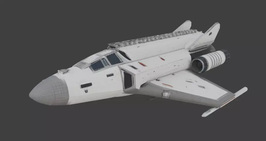 The realistic sci-fi transport shuttle is a highly detailed 3D asset designed for deep space exploration, smuggler scenarios, or industrial sci-fi game environments.