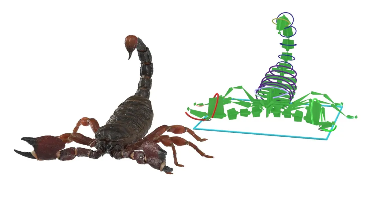 Realistic Scorpion Strikes Animated Rigged is fully rigged and is ready to be animated. You can easily position it the way you need or animate it the way your project requires using helpers in 3D Studio Max. See the turntable to get an idea of how rigging works.