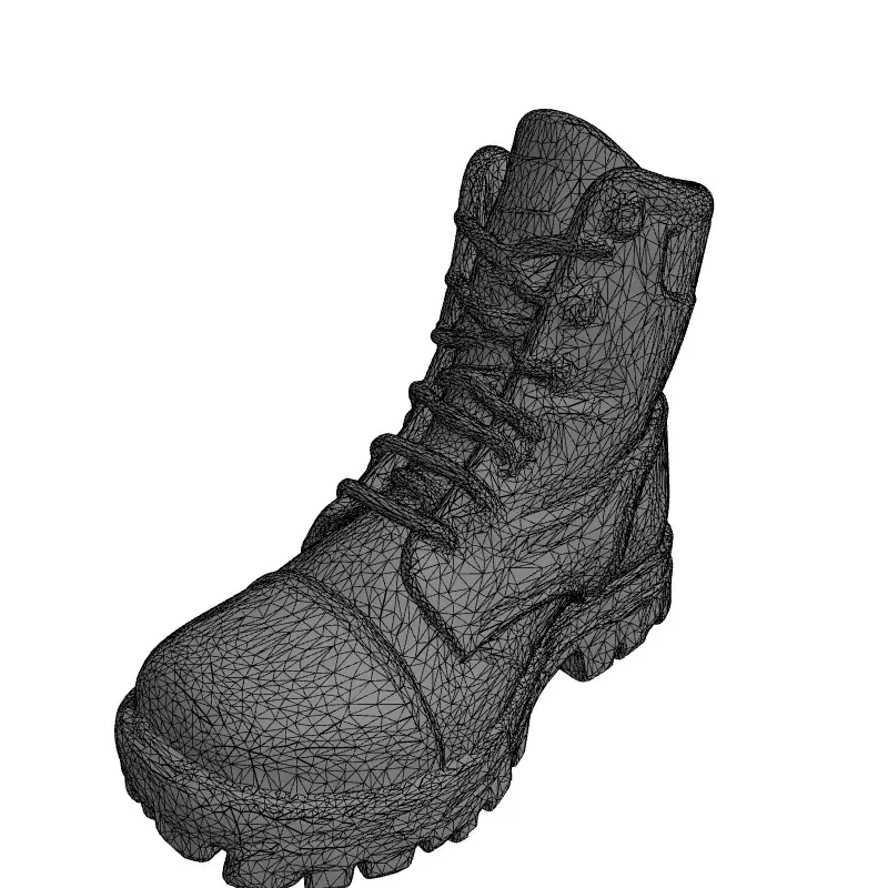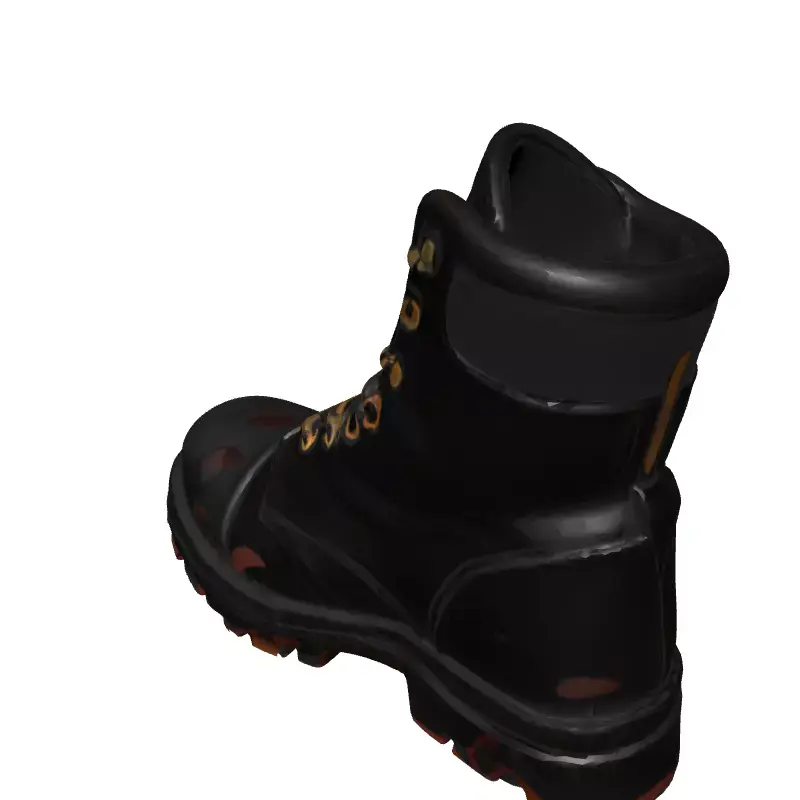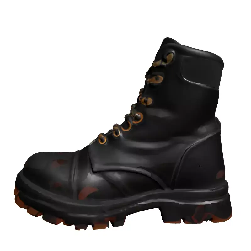 This is a meticulously crafted 3D model of a single black combat or work boot, designed with high realism and attention to detail. The model features a textured leather appearance, complete with realistic stitching, metal eyelets, and durable brown laces. Distinctive scuff marks and dirt splatters are present on the toe and sole, indicating authentic wear and a rugged aesthetic. This versatile asset is ideal for a wide range of applications, including enhancing character outfits in game development, populating detailed scenes in architectural visualization, or adding authenticity to AR/VR experiences. It is also perfect for digital art, film animation projects, and product showcases requiring a robust footwear element. The model boasts clean topology, ensuring smooth deformations and easy integration into various 3D pipelines. It is fully UV unwrapped with an optimized layout to facilitate texture application and is ready to be used with physically based rendering (PBR) workflows for stunning visual fidelity. Supported file formats typically include GLB, OBJ, FBX, USD, and potentially ABC, DAE, STL, and PLY, ensuring broad compatibility across different 3D software. Whether you need a hero asset for a close-up render or a highly detailed prop for a virtual environment, this boot model delivers exceptional quality and realism, suitable for both real-time applications and high-resolution static renderings.