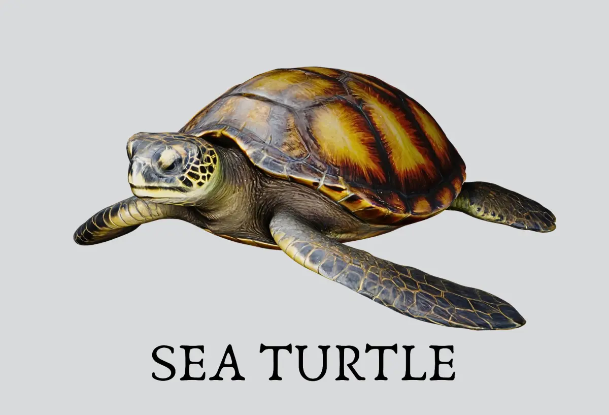 Realistic Sea Turtle Low Poly 3D Model PBR Textures