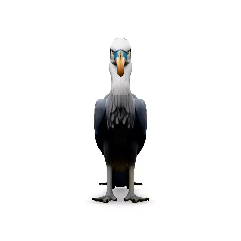 This highly detailed 3D model of a Shoebill Stork is perfect for various applications, including game development, AR/VR experiences, educational projects, and nature documentaries. The model features accurate anatomical proportions, realistic feather detailing, and a distinctive large bill. It's available in multiple formats (GLB, OBJ, FBX, STL) for seamless integration into different workflows. Optimized for both real-time and offline rendering, this model can be used in games, animations, or high-quality still images. The topology is clean and efficient, allowing for smooth subdivision if needed. PBR textures are included, providing realistic material representation and enhancing the visual appeal of the model. Whether you're creating a wildlife scene, a virtual museum exhibit, or an interactive game environment, this Shoebill Stork model is a valuable addition to your 3D asset library. The model is UV unwrapped, ensuring efficient texture mapping. This model is ready to import and use in your projects, saving you valuable time and effort. It is suitable for close-up renders and animations, showcasing the intricate details of this unique bird.