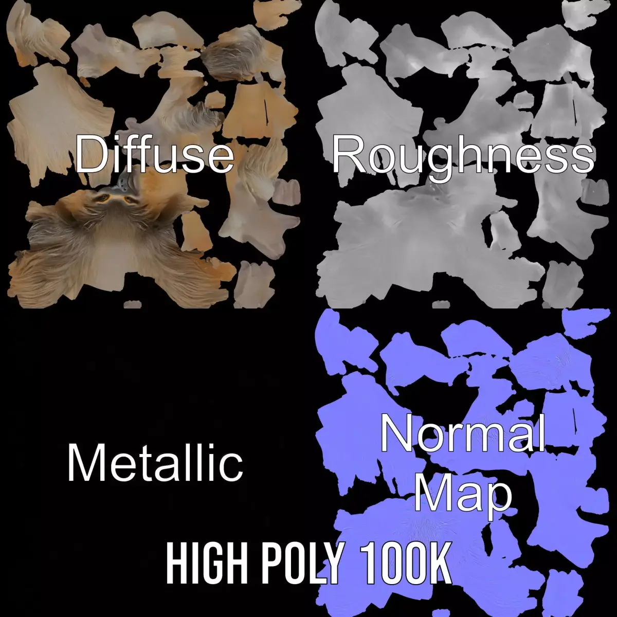Explore the beauty of nature with the Realistic Sloth Fur model pack, meticulously designed to capture the gentle charm of a sloth. Ideal for wildlife animations, educational content, or interactive exhibits. Each model has 3 levels of detail: low-poly (1000 triangles for mobile), middle-poly (10,000 triangles for environment), and high-poly (100,000 triangles), allowing use in production rendering (3ds Max, Maya, Cinema4D, Blender, Vray/Corona/Cycles), game engines (Unity and Unreal compatible), and interactive presentations. This model features textures including PBR, Diffuse, NormalMap, and reflection/roughness/metallic, suitable for modern rendering engines. All models are accurately unwrapped with no overlapping UVs, and texture sizes are 4096x4096. We invite you to like and comment if you enjoy this model.