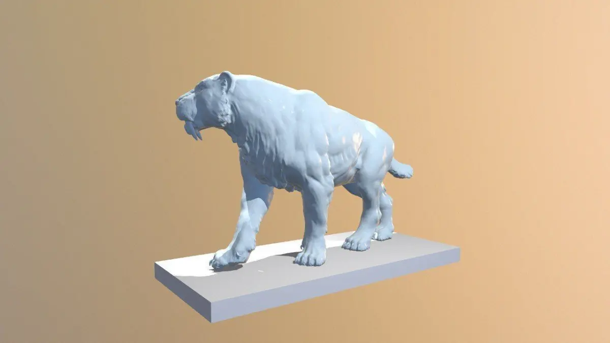 A realistic miniature model of a Smilodon, a saber-toothed cat. A stand is provided in a separate file.Smilodon is a genus of felids belonging to the extinct subfamily Machairodontinae. It is one of the best known saber-toothed predators and prehistoric mammals. Although commonly known as the saber-toothed tiger, it was not closely related to the tiger or other modern cats.